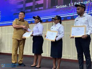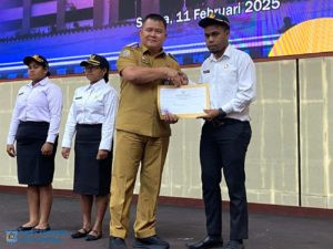 ππ¨ππ ππ¨π«π¨π§π β Penjabat Wali Kota Sorong, Dr. Bernhard E. Rondonuwu, S.Sos, M.Si, menyerahkan Surat Keputusan Calon Pegawai Negeri Sipil (SK CPNS) kepada 259 CPNS, yang diterima tiga orang perwakilan yakni, Jordania Antaribaba, S.Kom, dr. Stelaine Osok, dan Enjelika Agustin Malibela, di Gedung Lambert Jitmau, Selasa (11/2/2025).
