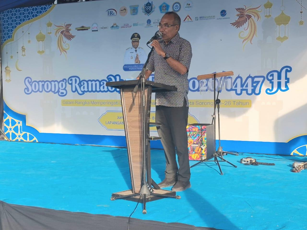 Dalam sambutan Wali Kota Sorong yang dibacakan Abdul Rahim Oeli, SE, Pemerintah Kota menyampaikan ucapan selamat menunaikan ibadah puasa Ramadhan 1447 Hijriah kepada seluruh umat Muslim di Kota Sorong. Ia berharap momentum Ramadhan dapat meningkatkan keimanan dan ketaqwaan sekaligus mempererat tali silaturahmi antarwarga.