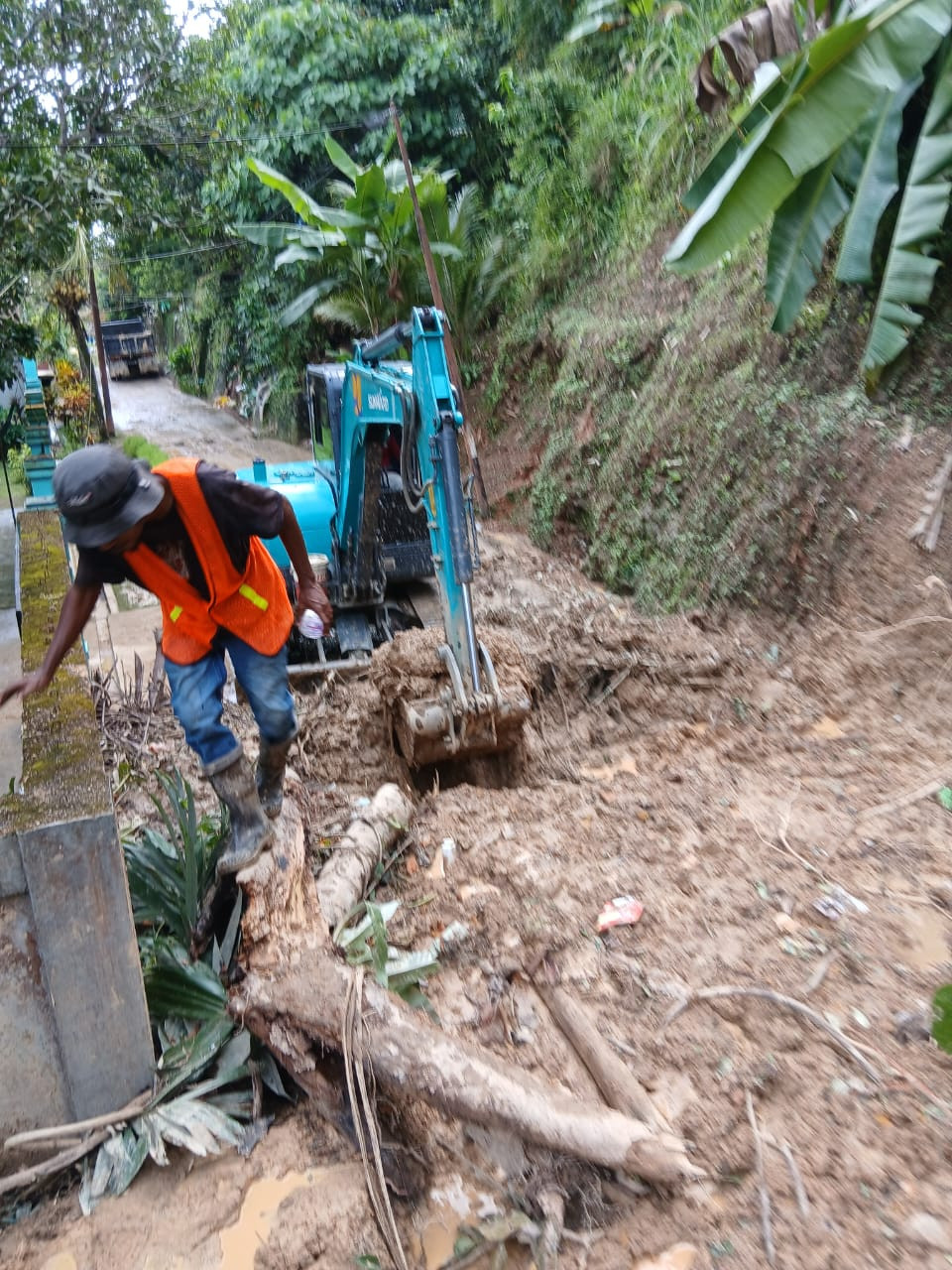 Pemerintah Kota Sorong melalui Dinas Cipta Karya Dan Tata Ruang Kota Sorong dalam pekerjaan Tanggap Bencana Longsor, Pembersihan Longsor di jalan Danau Maninjau Kelurahan Pal Putih. Selasa, 06 Mei 2025
