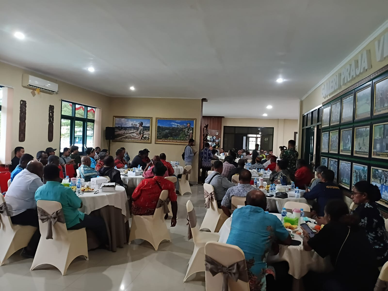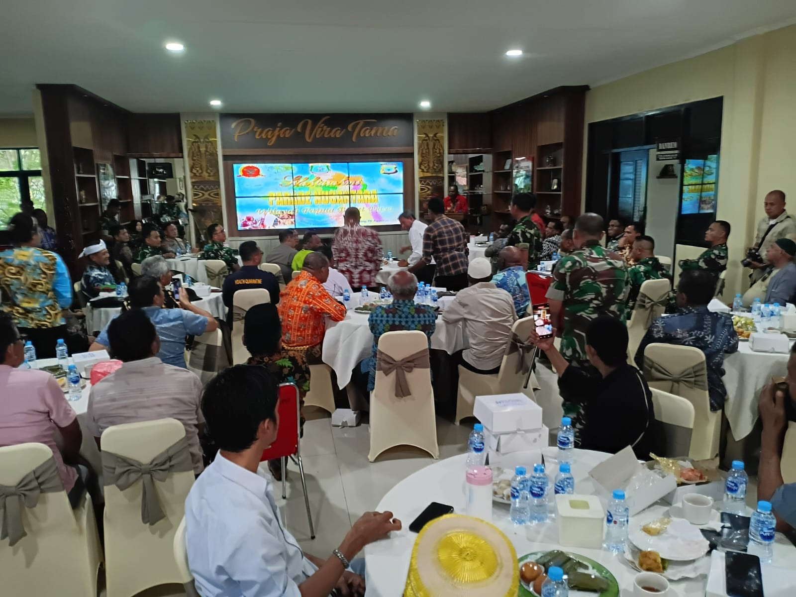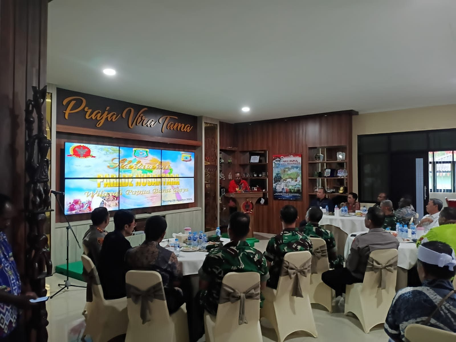 Wali Kota Sorong, Septinus Lobat, S.H., MPA., hadir dalam acara tatap muka Bersama tokoh masyarakat pasca insiden kericuhan yang terjadi di Kota Sorong, Bersama Gubernur dan Wakil Gubernur Papua Barat Daya, Forkopimda, para kepala suku, tokoh agama, TNI dan Polri yang terlaksana di Aula Korem 181/Pvt Sorong. Kamis, (28/8/2025).