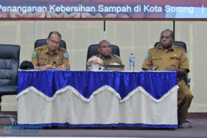 Penjabat Wali Kota Sorong , Septinus Lobat, SH.MPA, Pj. Sekda Kota Sorong, Ruddy R. Lakku, S.Pi., MM., bersama Plt Kepala Dinas Lingkungan Hidup, Andreas Adi melakukan Rapat Koordinasi dengan Ketua RT/RW , Kepala Lurah dan Distrik se Sorong Raya membahas terkait Penanganan Kebersihan Sampah yang terjadi di Kota Sorong ini, ( Selasa 12/9/2023 ).