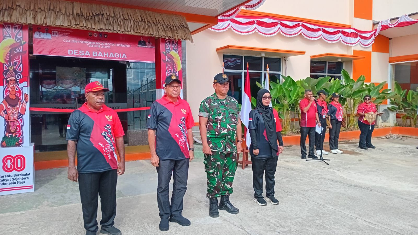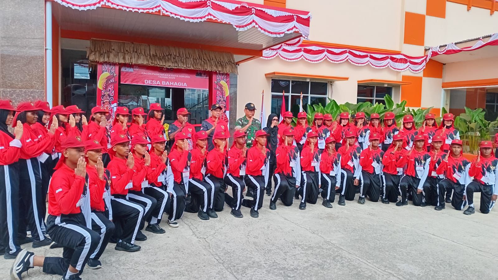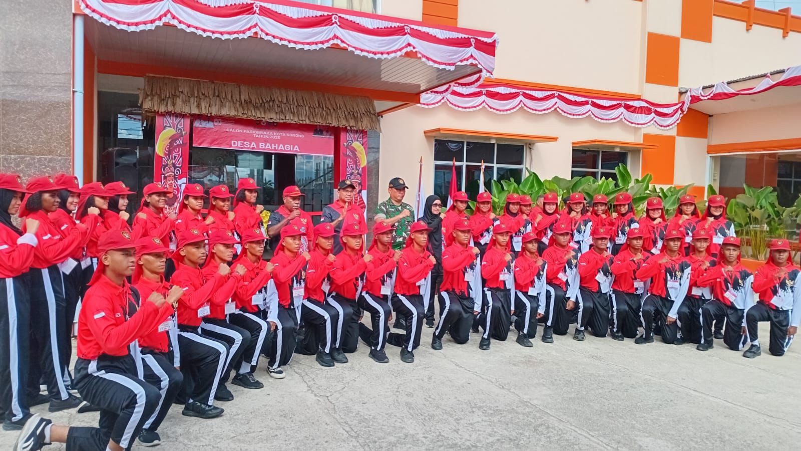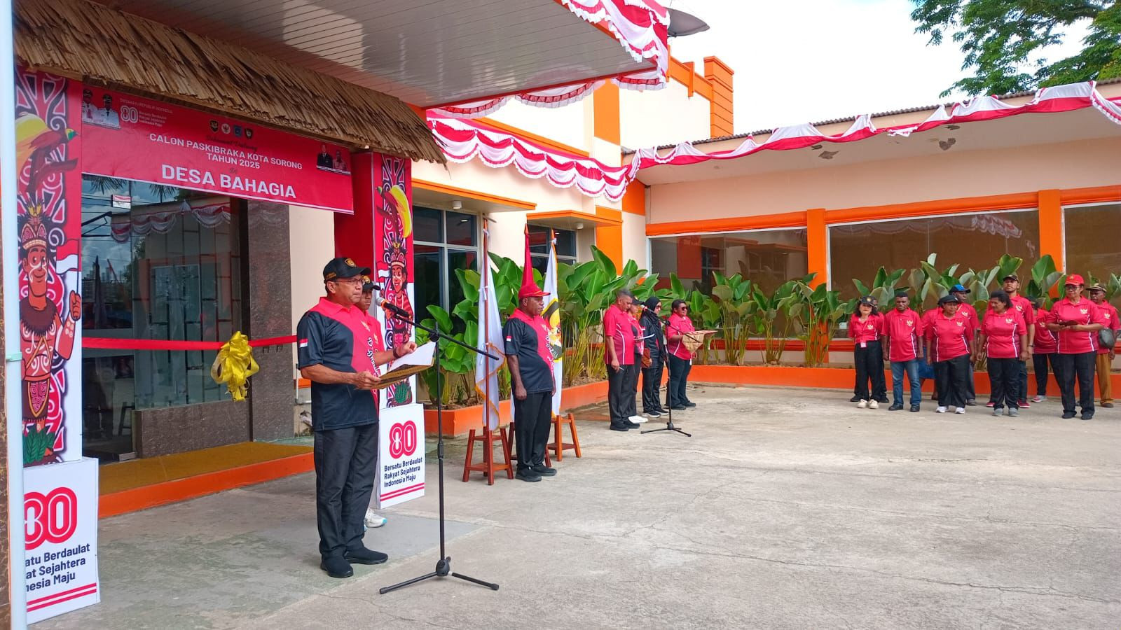 Upacara bagi Pasukan Pengibar Bendera Pusaka (PASKIBRAKA) Kota Sorong tahun 2025 dalam rangka memasuki Desa Bahagia