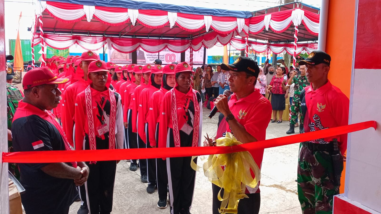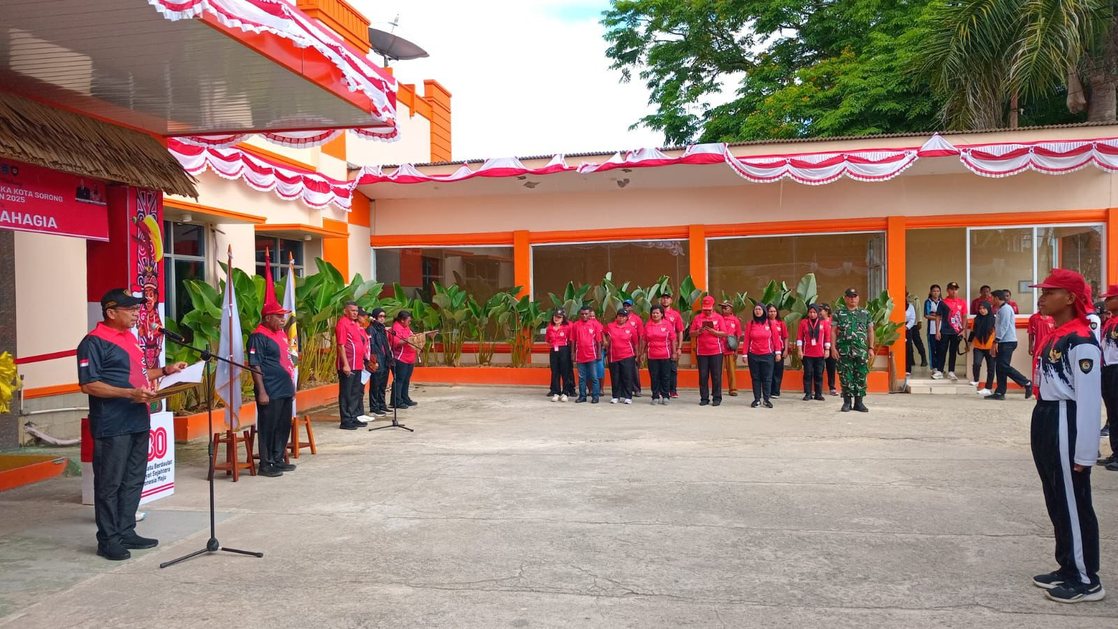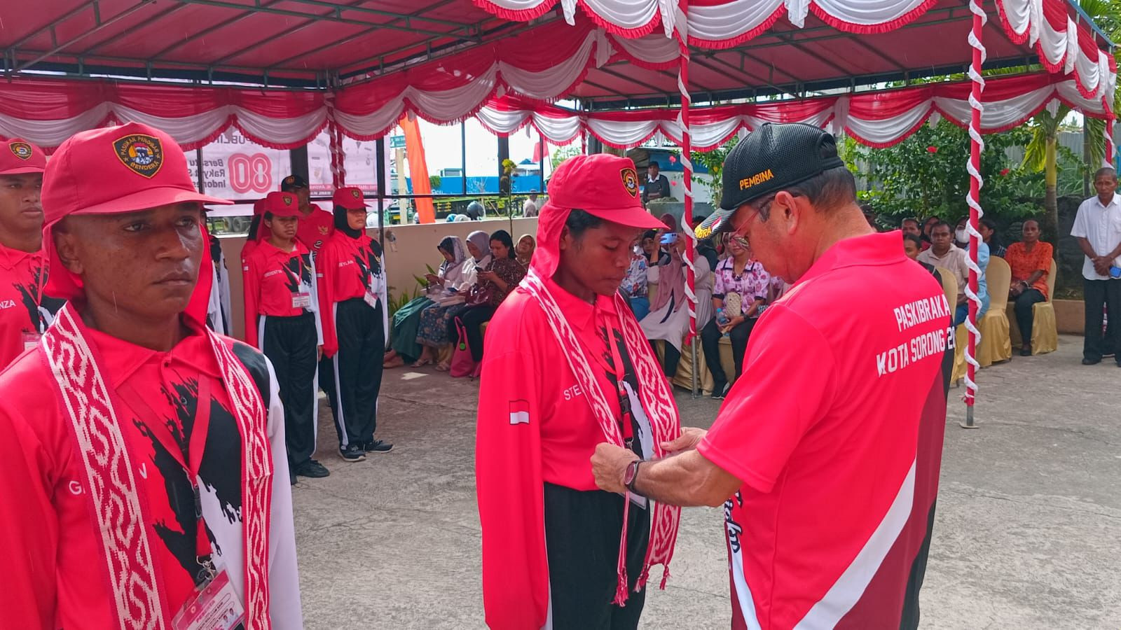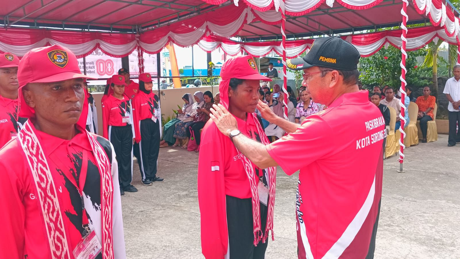 Upacara bagi Pasukan Pengibar Bendera Pusaka (PASKIBRAKA) Kota Sorong tahun 2025 dalam rangka memasuki Desa Bahagia