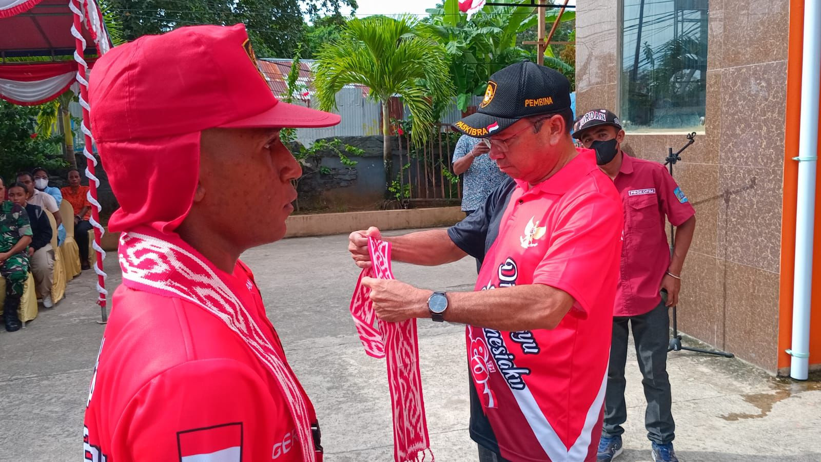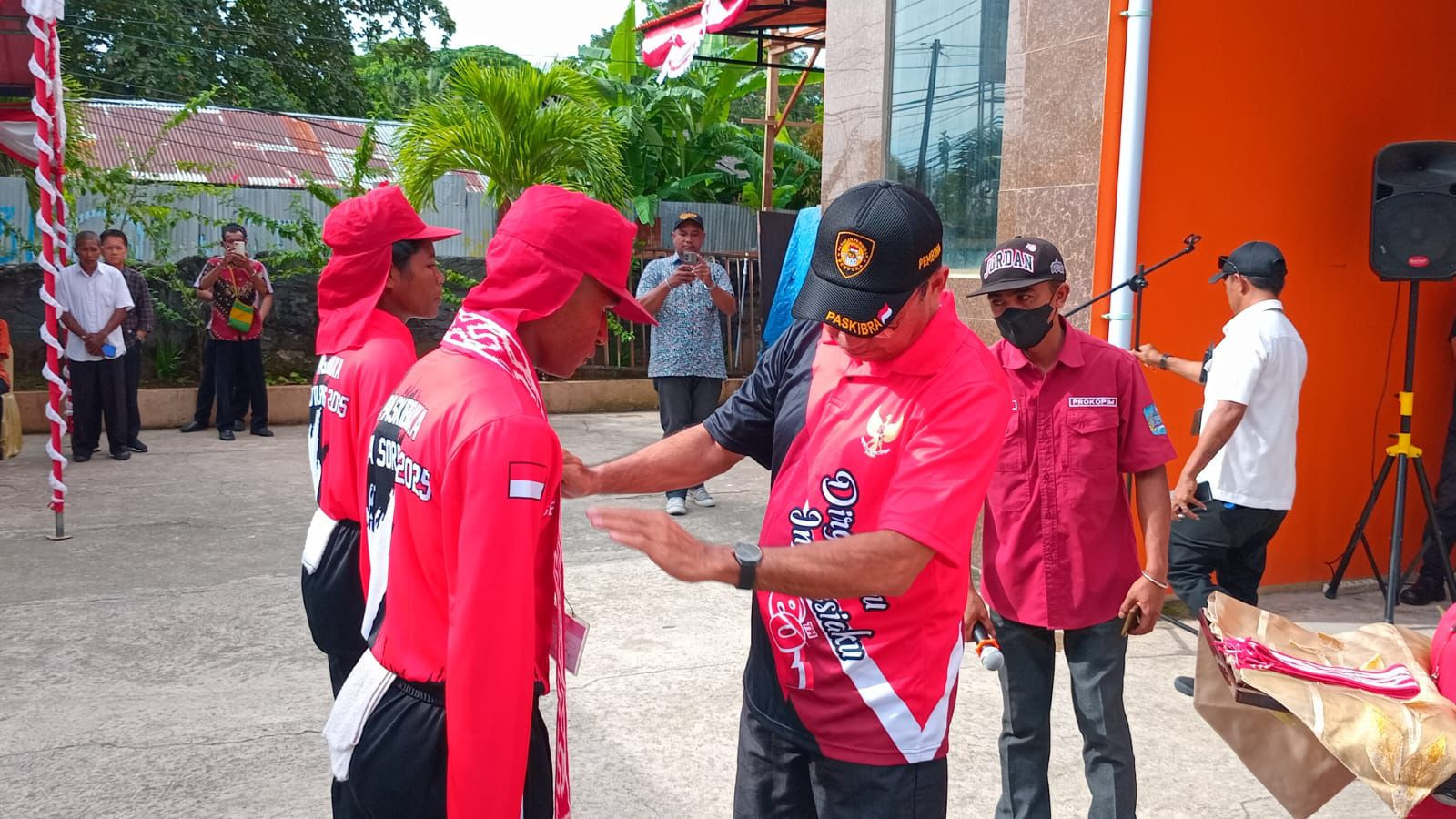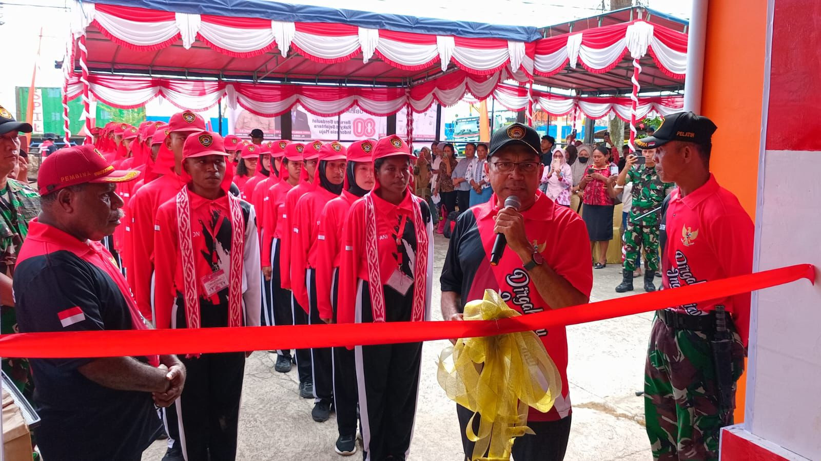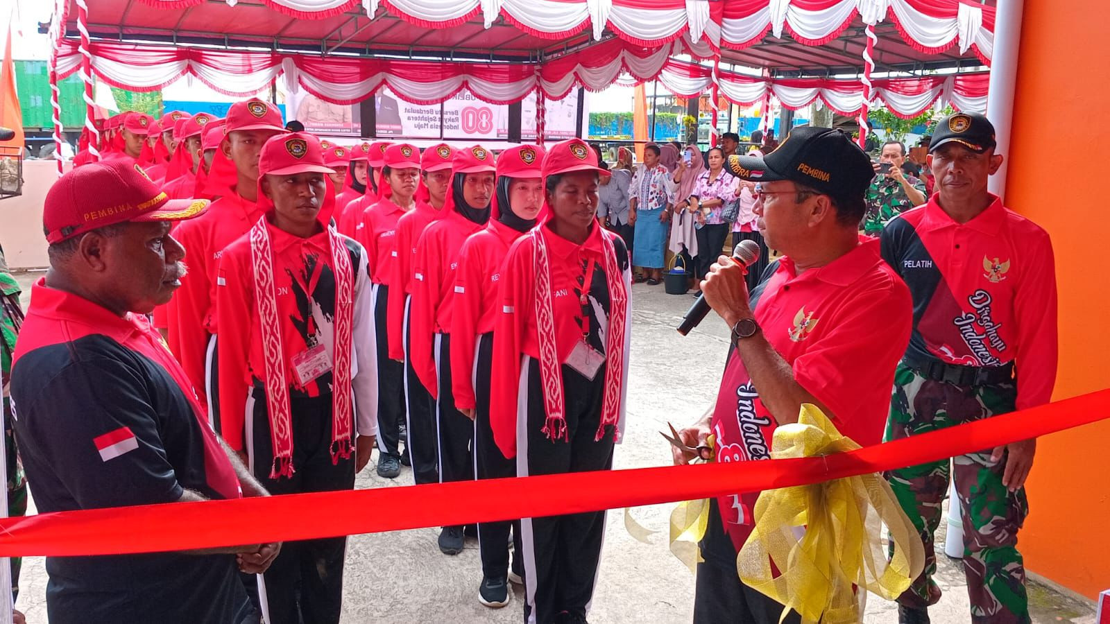 Upacara bagi Pasukan Pengibar Bendera Pusaka (PASKIBRAKA) Kota Sorong tahun 2025 dalam rangka memasuki Desa Bahagia
