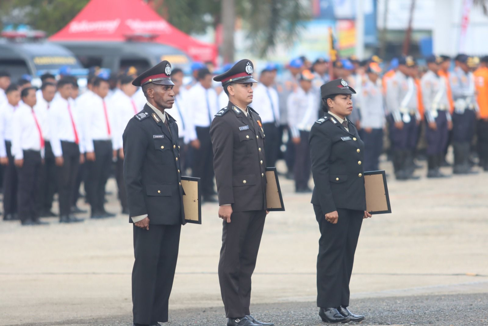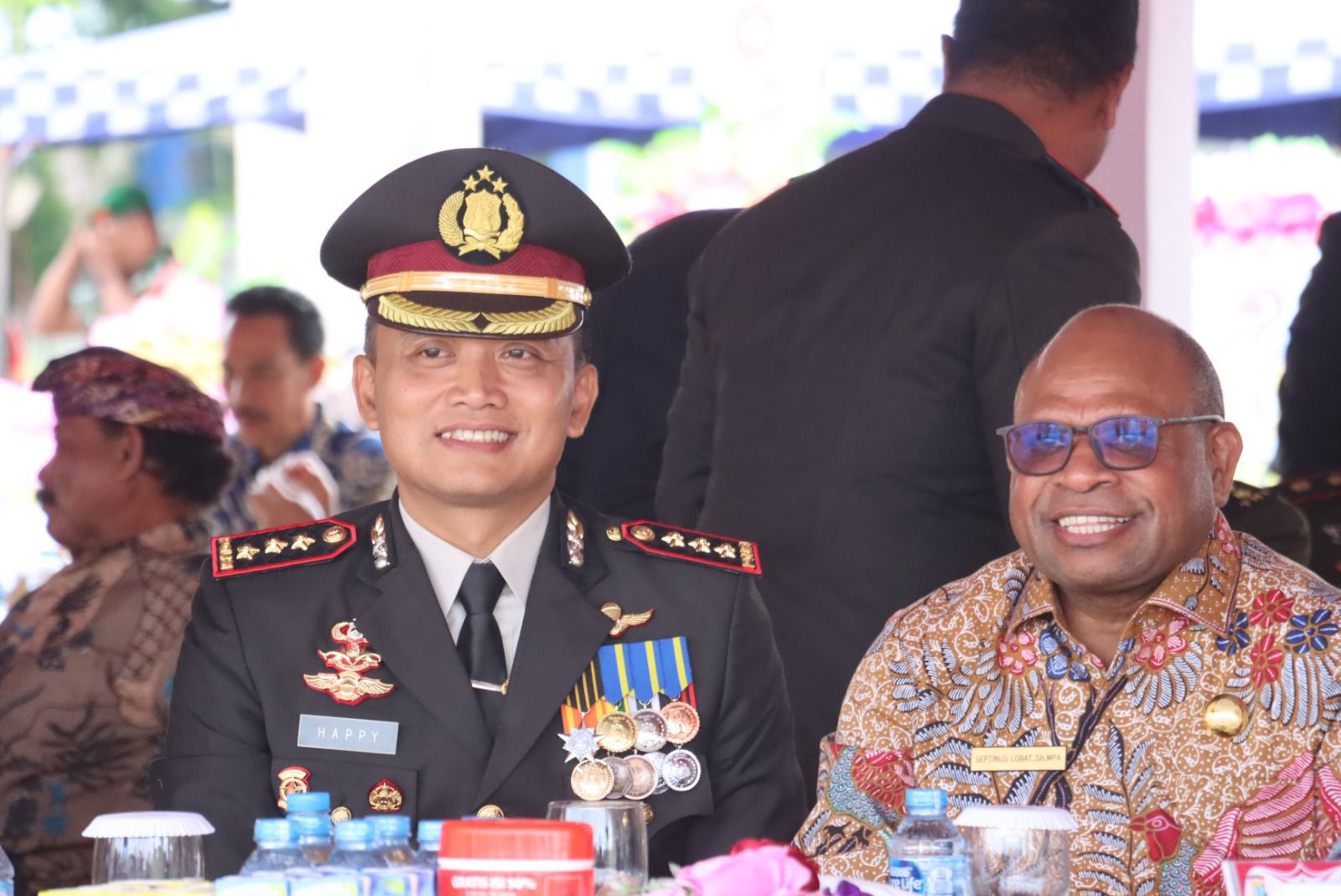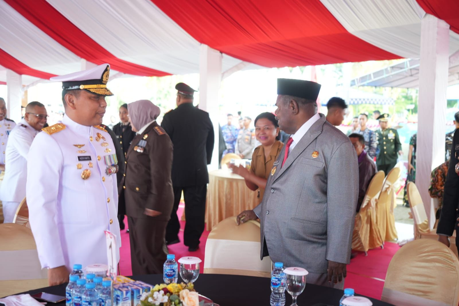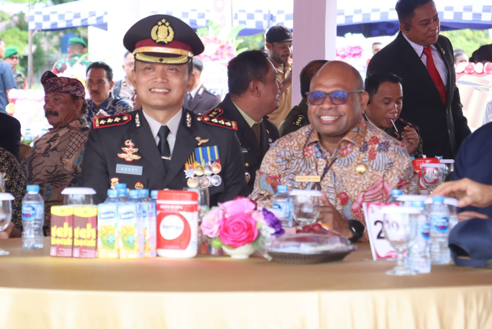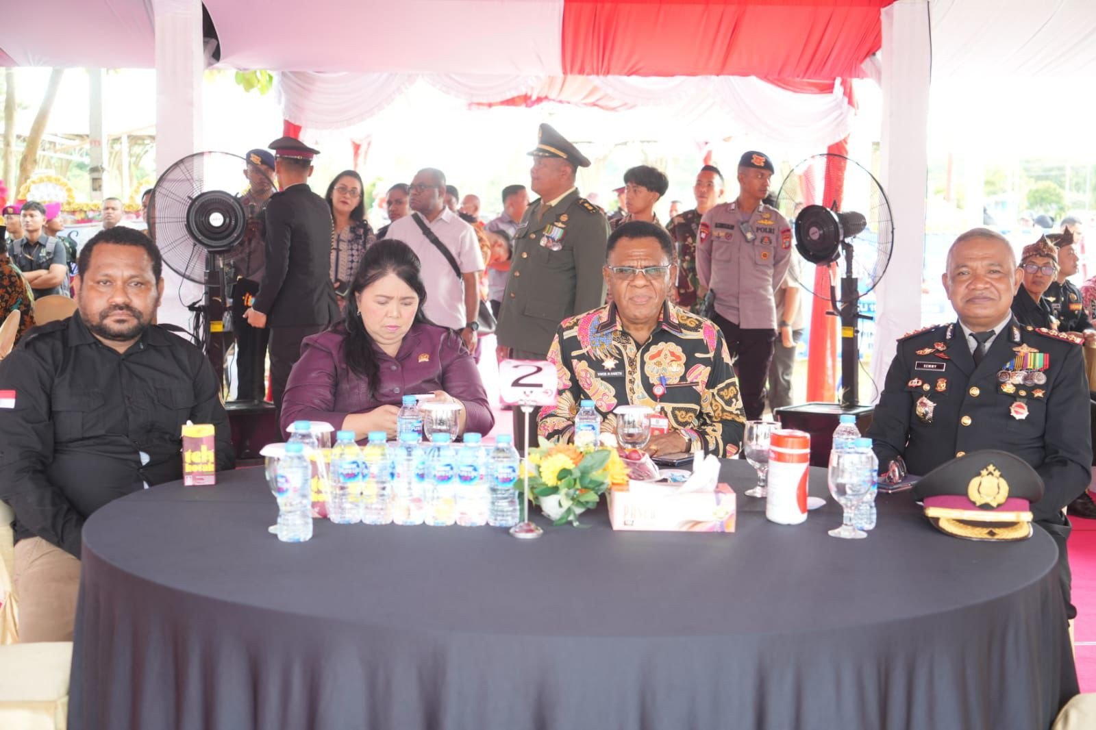 BERITA FOTO Wali Kota Sorong, Septinus Lobat, S.H., M.P.A., bersama Plt. Sekda Ruddy R. Lakku, S.Pi., M.M., menghadiri upacara peringatan Hari Ulang Tahun Bhayangkara ke-79 yang digelar di Alun-Alun Aimas. Selasa (1/7/2025). Upacara tersebut diikuti oleh unsur Forkopimda dari Kota dan Kabupaten Sorong. Dengan mengusung tema “Polri untuk Masyarakat”, kegiatan ini menjadi momentum refleksi peran Polri dalam memberikan pelayanan terbaik bagi masyarakat dan menjaga keamanan di wilayah Sorong Raya.