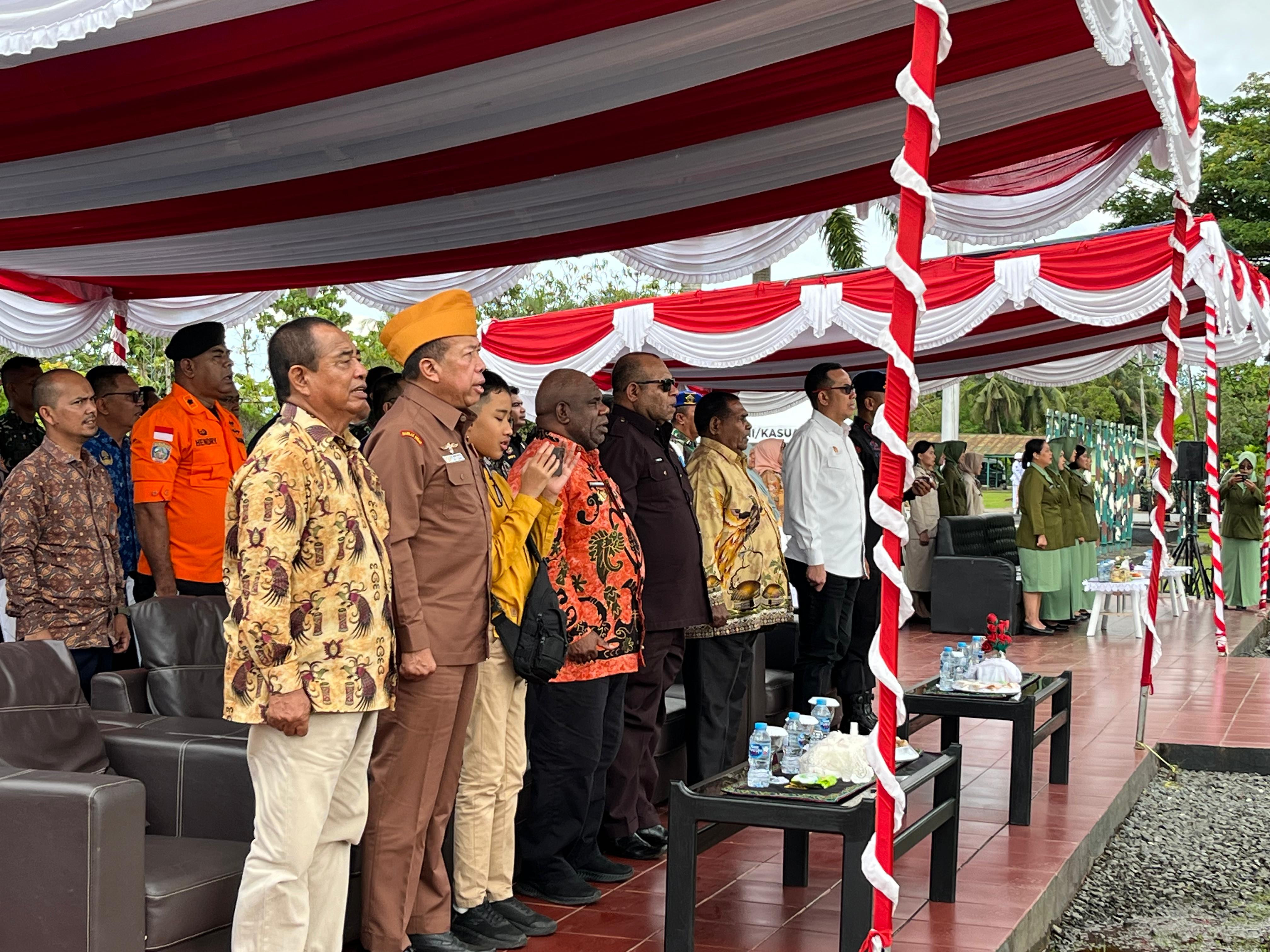 Mewakili Wali Kota Sorong, Asisten Pemerintahan dan Kesejahteraan Rakyat, Jeremias Gembenop, S.Sos., M.H., menghadiri upacara serah terima jabatan Komandan Batalyon Infanteri (Danyonif) 762/Vira Yudha Sakti.