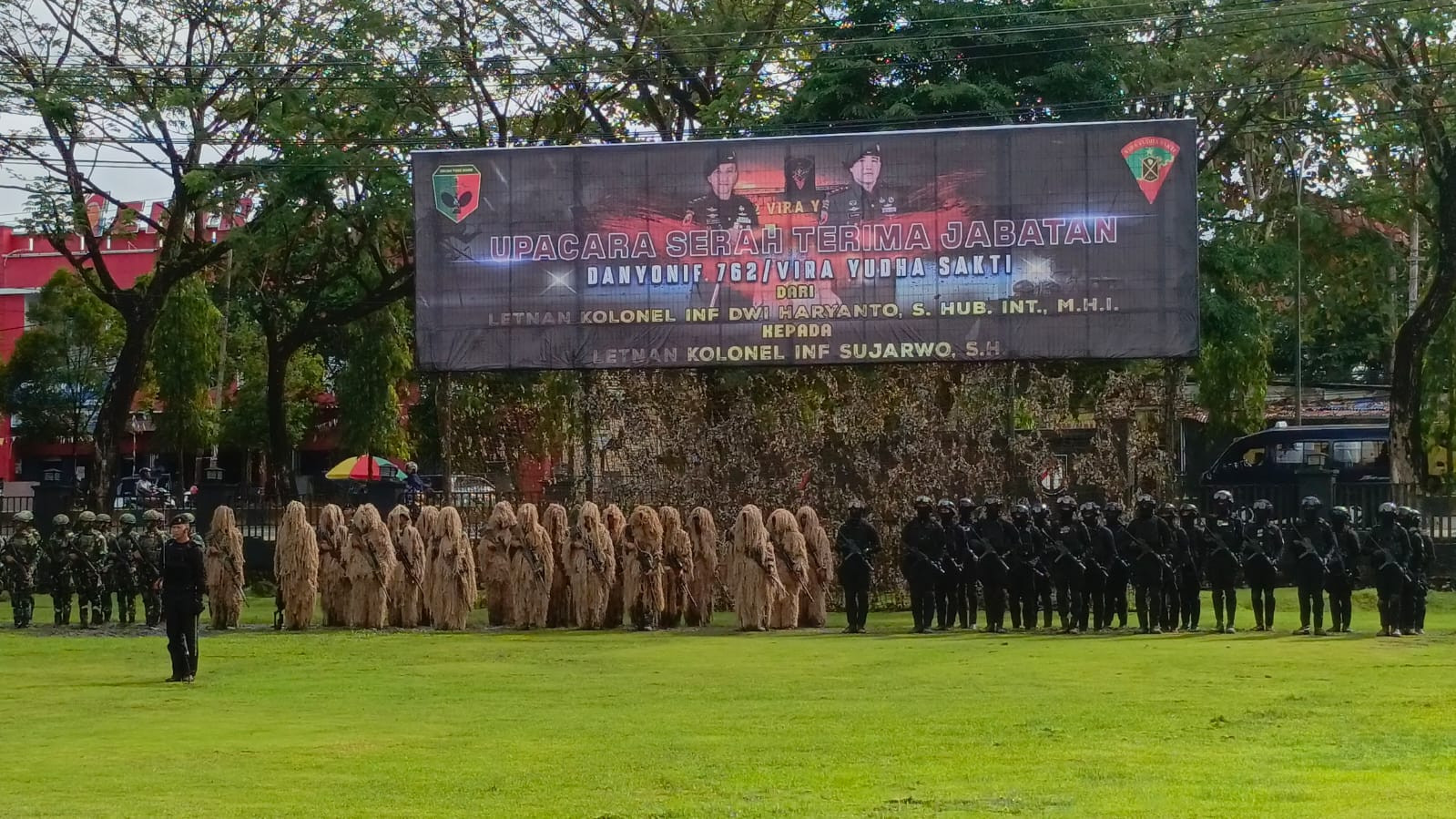 Jabatan Danyonif 762/VYS resmi diserahterimakan dari Letnan Kolonel Inf. Dwi Haryanto, S.Hub.Int., M.H.I., kepada Letnan Kolonel Inf. Sujarwo, S.H., dalam upacara yang berlangsung di Lapangan Batalyon 762/VYS. (17/9/2025).