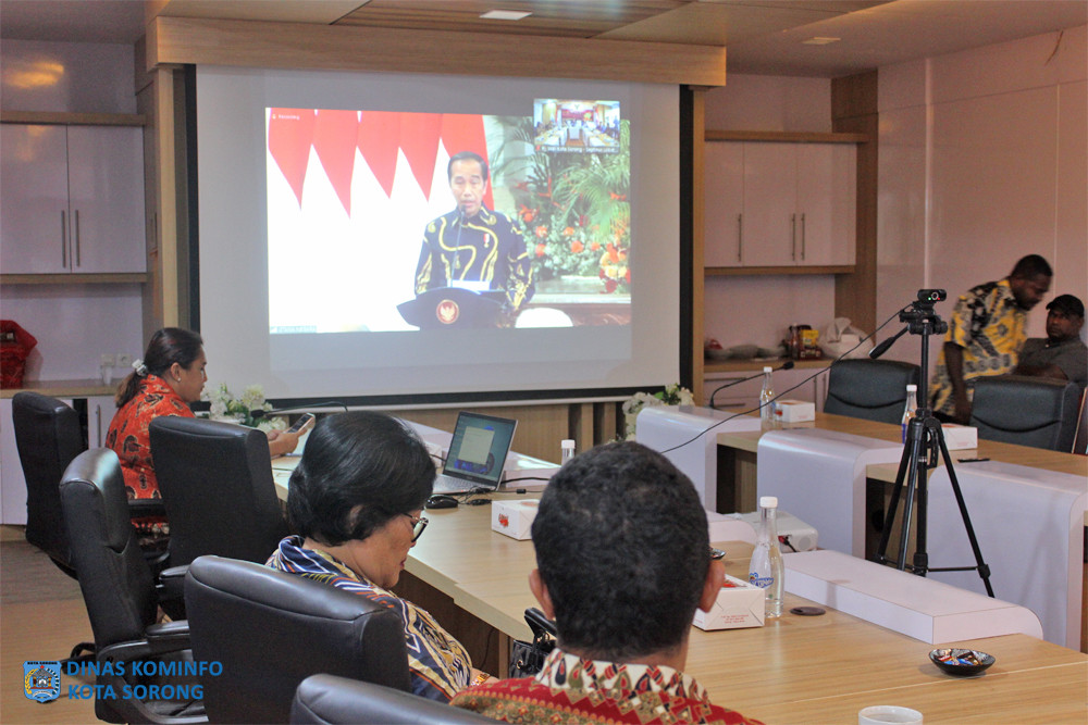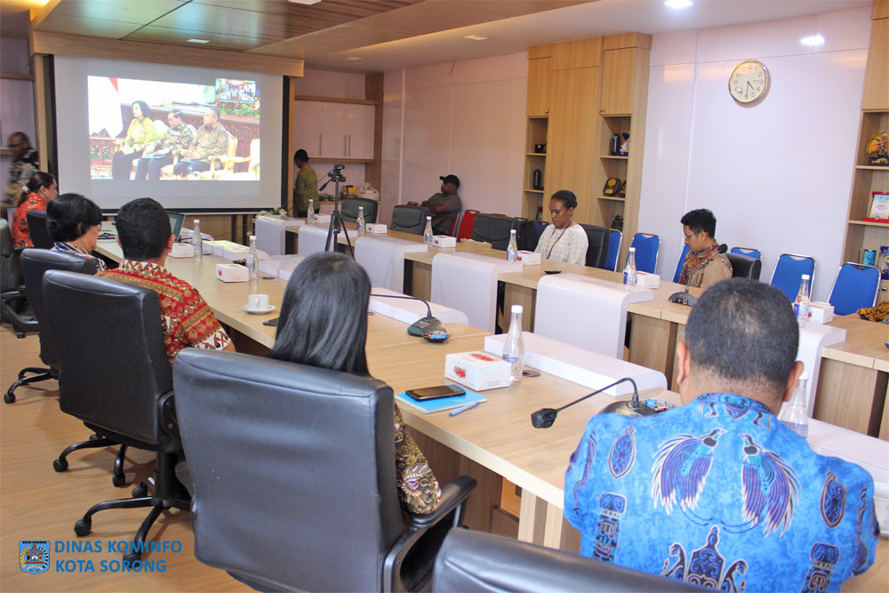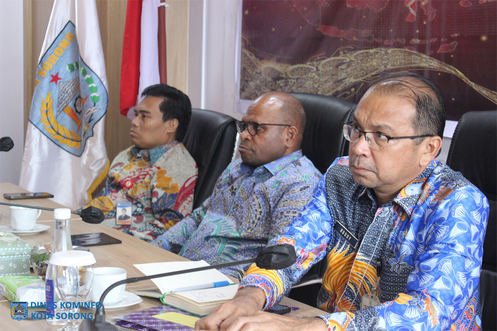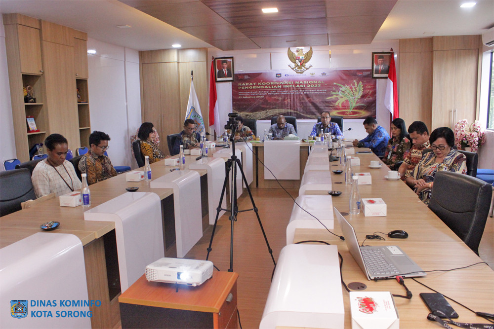 KOTA SORONG – Penjabat Wali Kota Sorong, Septinus Lobat, S.H., MPA, mengikuti jalannya Rapat Koordinasi Nasional (Rakornas) Pengendalian Inflasi Tahun 2023, dan Pemberian Tim Pengendalian Inflasi Daerah (TPID) Award, di Ruang Anggrek Lantai II Kantor Wali Kota Sorong, Kamis (31/8/2023) sore hari.