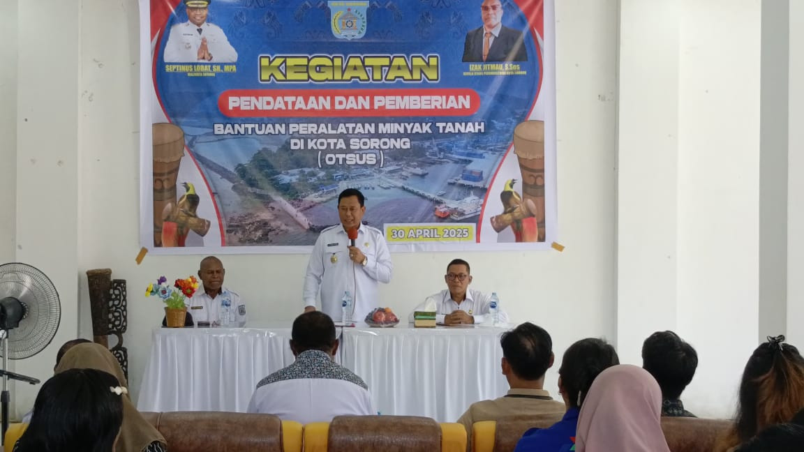 Wakil Wali Kota Sorong, H. Anshar Karim, A.Md, didampingi oleh Asisten II Setda Kota Sorong, Tamrin Tajuddin, ST, MM, menghadiri kegiatan pendataan dan penyerahan bantuan peralatan minyak tanah berupa pompa minyak listrik kepada pangkalan-pangkalan minyak tanah di Kota Sorong. Kegiatan ini diselenggarakan oleh Dinas Perindustrian Kota Sorong bekerja sama dengan Pertamina, bertempat di Kantor Dinas Perindustrian. (30/4/2025).