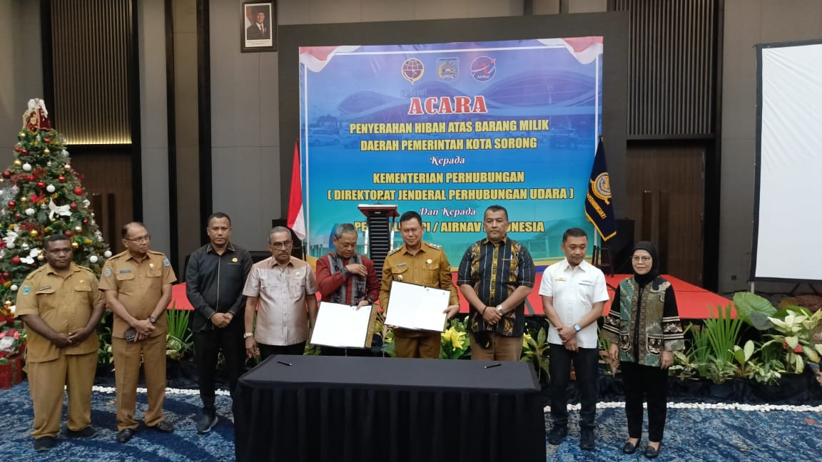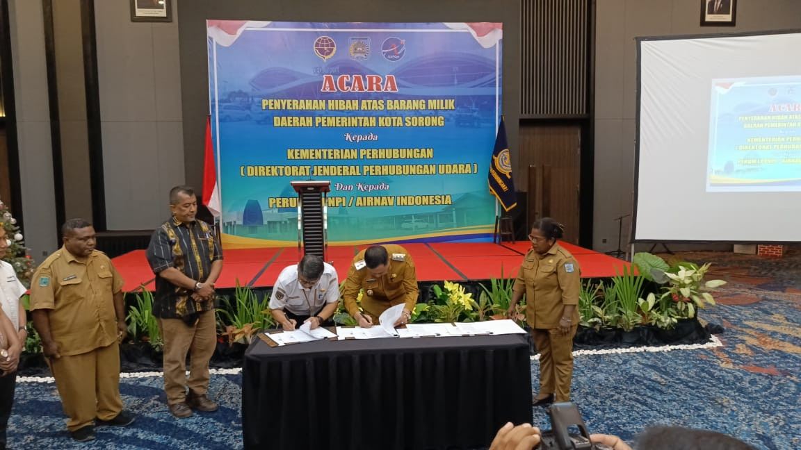 “Dengan telah diserahkannya barang milik daerah Pemerintah Kota Sorong melalui proses penandatanganan hibah ini, kami berharap aset tersebut dapat dikelola secara optimal demi peningkatan pelayanan penerbangan dan keselamatan transportasi udara,” ujar Wakil Wali Kota.
