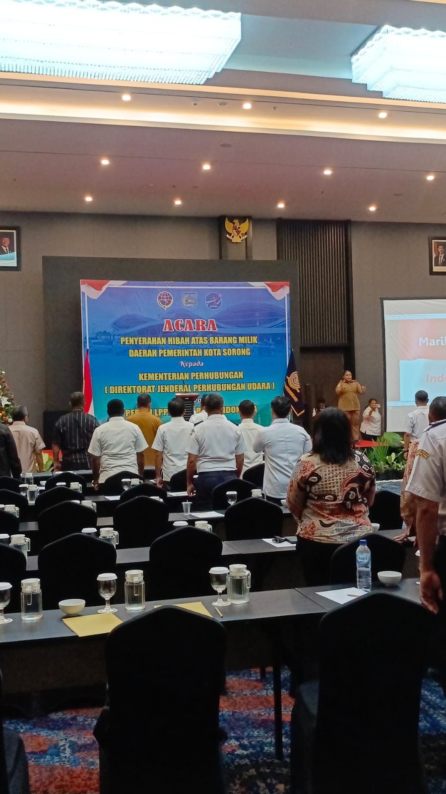 Wakil Wali Kota Sorong, H. Anshar Karim, A.Md., menghadiri kegiatan Penyerahan Hibah Barang Milik Daerah Pemerintah Kota Sorong kepada Kementerian Perhubungan Republik Indonesia, dalam hal ini Direktorat Jenderal Perhubungan Udara, serta kepada Perum Lembaga Penyelenggara Pelayanan Navigasi Penerbangan Indonesia (LPPNPI/AirNav Indonesia). Kegiatan tersebut berlangsung di Hotel Aston Sorong, (15/12/2025).