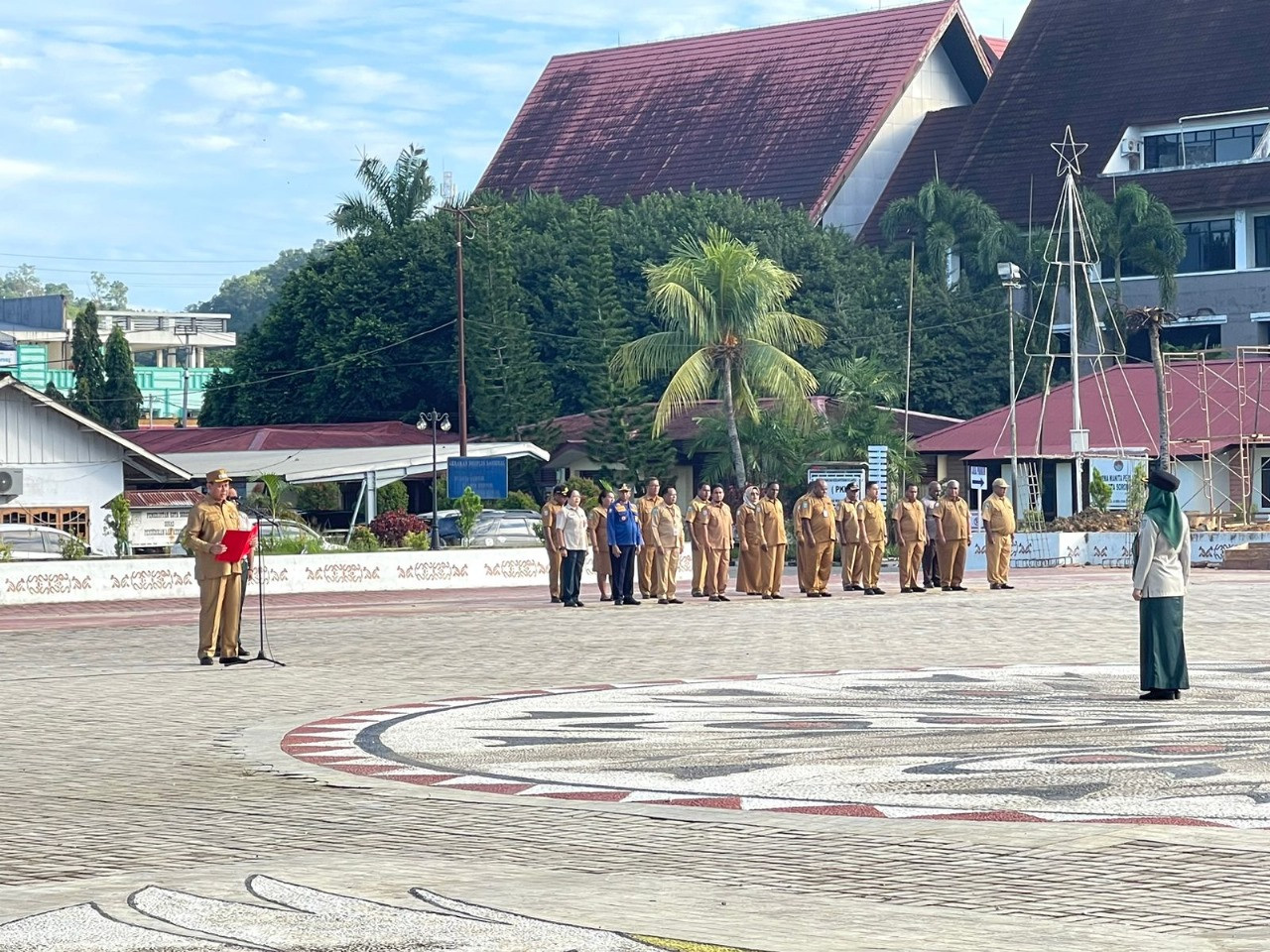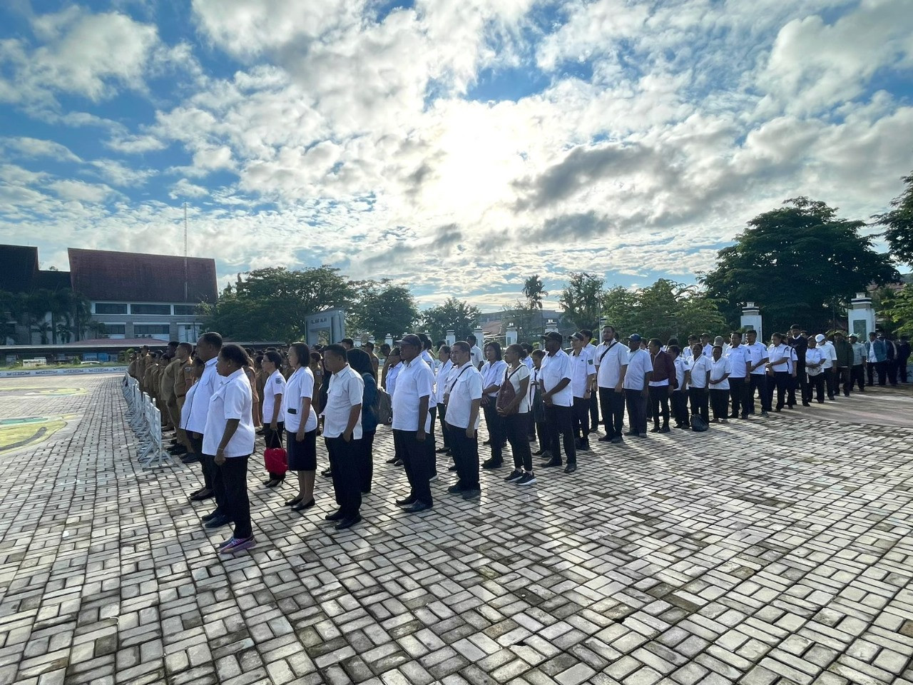 KOTA SORONG — Wakil Wali Kota Sorong, H. Anshar Karim, A.Md., memimpin apel pagi yang berlangsung di Lapangan Lanscape Kantor Wali Kota Sorong. Senin (21/7/2025). Apel tersebut dirangkaikan dengan penyerahan piala dan piagam penghargaan kepada para pemenang Lomba Kelurahan Tingkat Kota Sorong Tahun 2025.