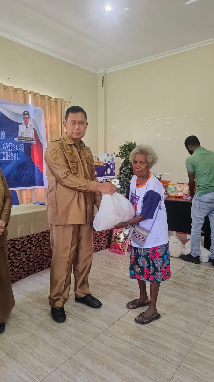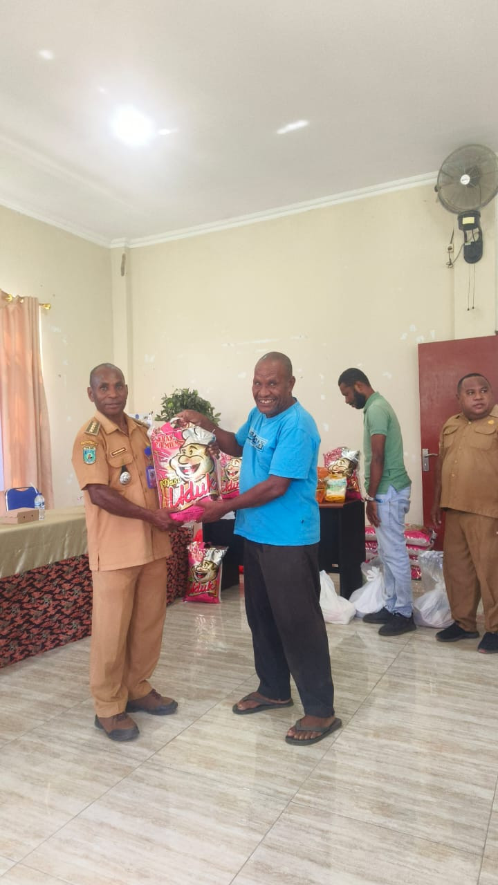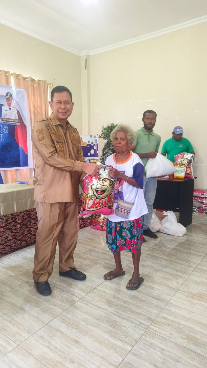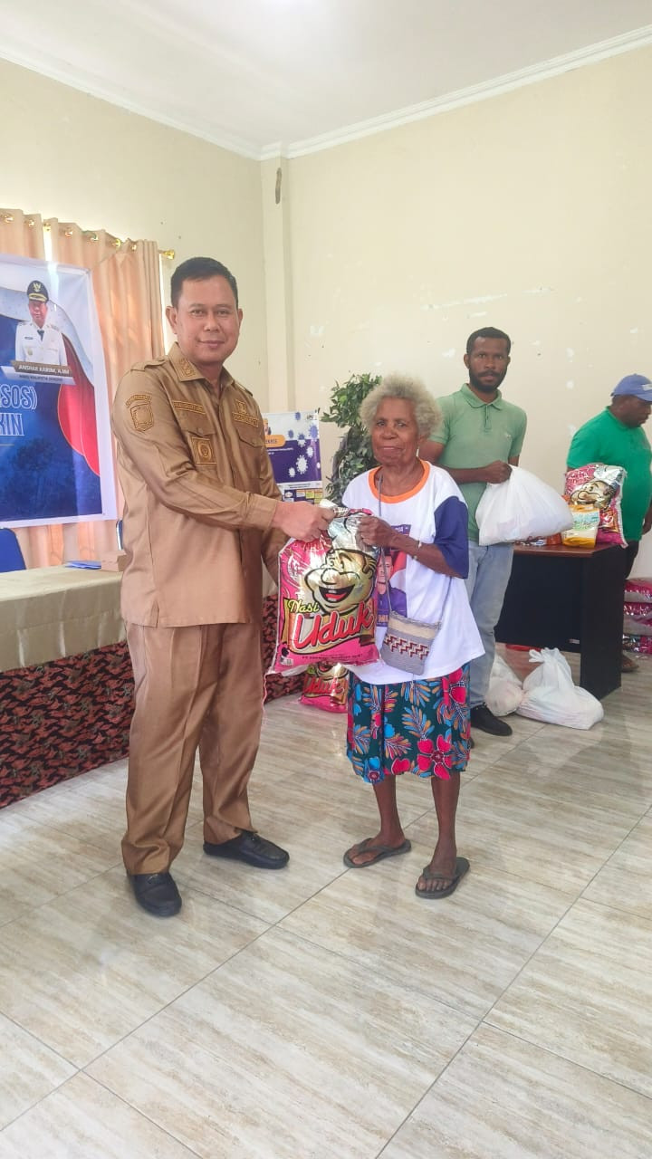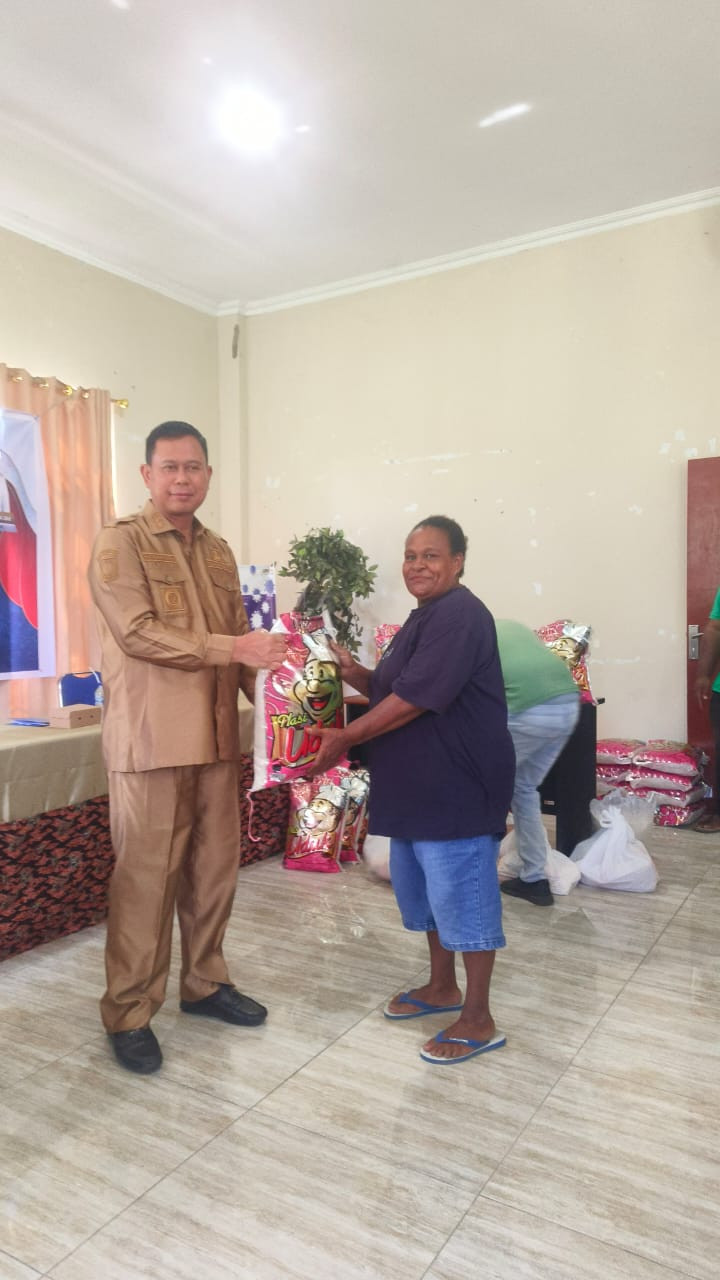 Wakil Wali Kota Sorong, H. Anshar Karim, A.Md., menyerahkan bantuan sosial (bansos) permakanan bagi keluarga miskin yang bersumber dari Dinas Sosial Kota Sorong, bertempat di Kelurahan Klasaman, Distrik Klaurung, Kota Sorong, (16/12/2025).