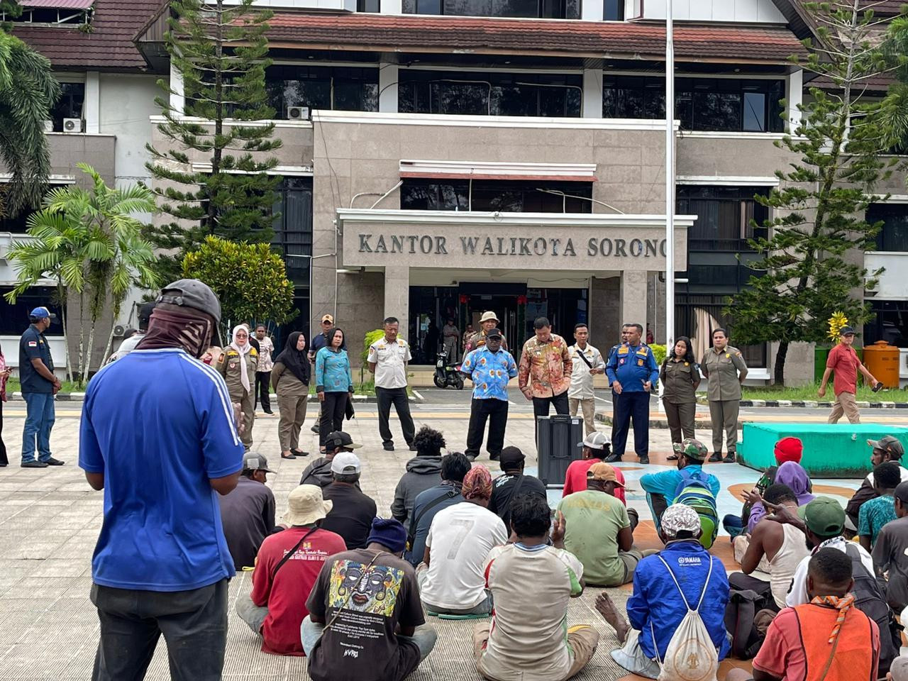 Wakil Wali Kota Sorong, H. Anshar Katim, A. Md turun langsung menemui para petugas kebersihan yang melakukan aksi penyampaian aspirasi di Lapangan Kantor Wali Kota Sorong. Kehadiran Wakil Wali Kota tersebut merupakan bentuk perhatian dan komitmen Pemerintah Kota Sorong terhadap kesejahteraan tenaga kebersihan yang selama ini berperan penting menjaga kebersihan kota. Kamis, (15/1/2026).