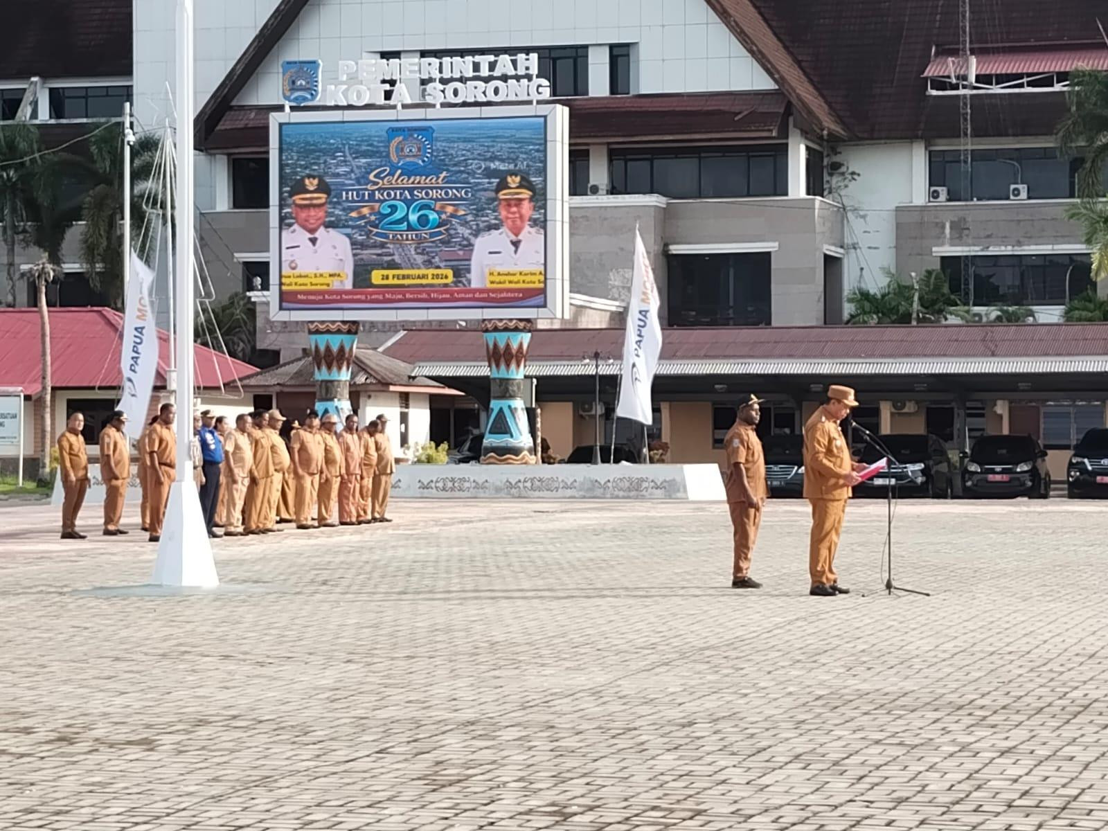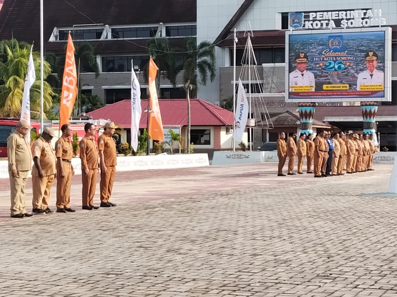 Hal tersebut disampaikannya pada saat memimpin apel pagi di lapangan landscape kompleks Kantor Wali Kota Sorong, Senin (2/3/2026).