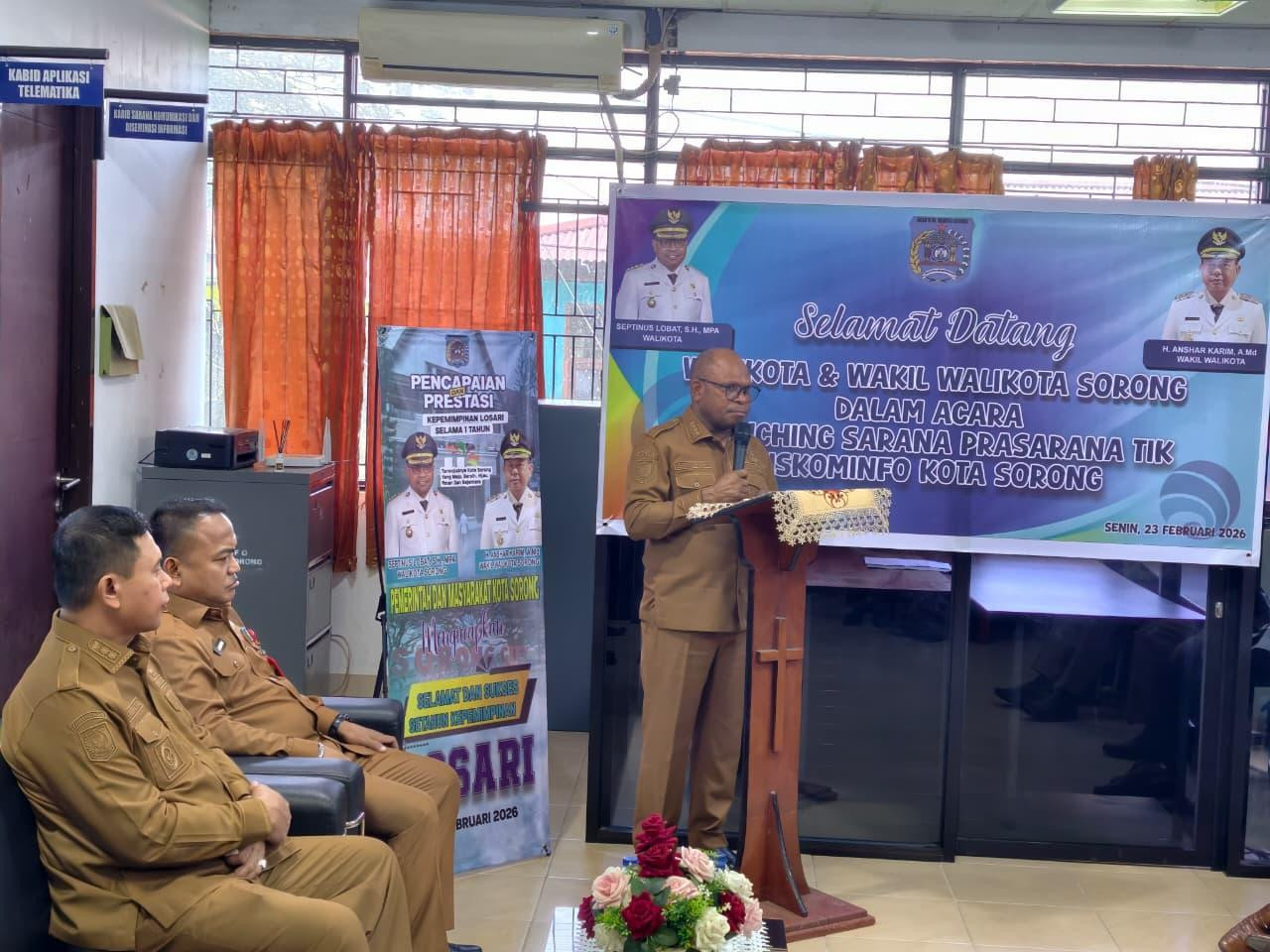 Senin, 23 Februari 2026, Pemerintah Kota Sorong melalui Dinas Komunikasi dan Informatika resmi meluncurkan sarana prasarana Teknologi Informasi dan Komunikasi (TIK) publik, termasuk peresmian ruang podcast Pemerintah Kota Sorong sebagai langkah memperkuat keterbukaan informasi dan komunikasi antara pemerintah dan masyarakat.