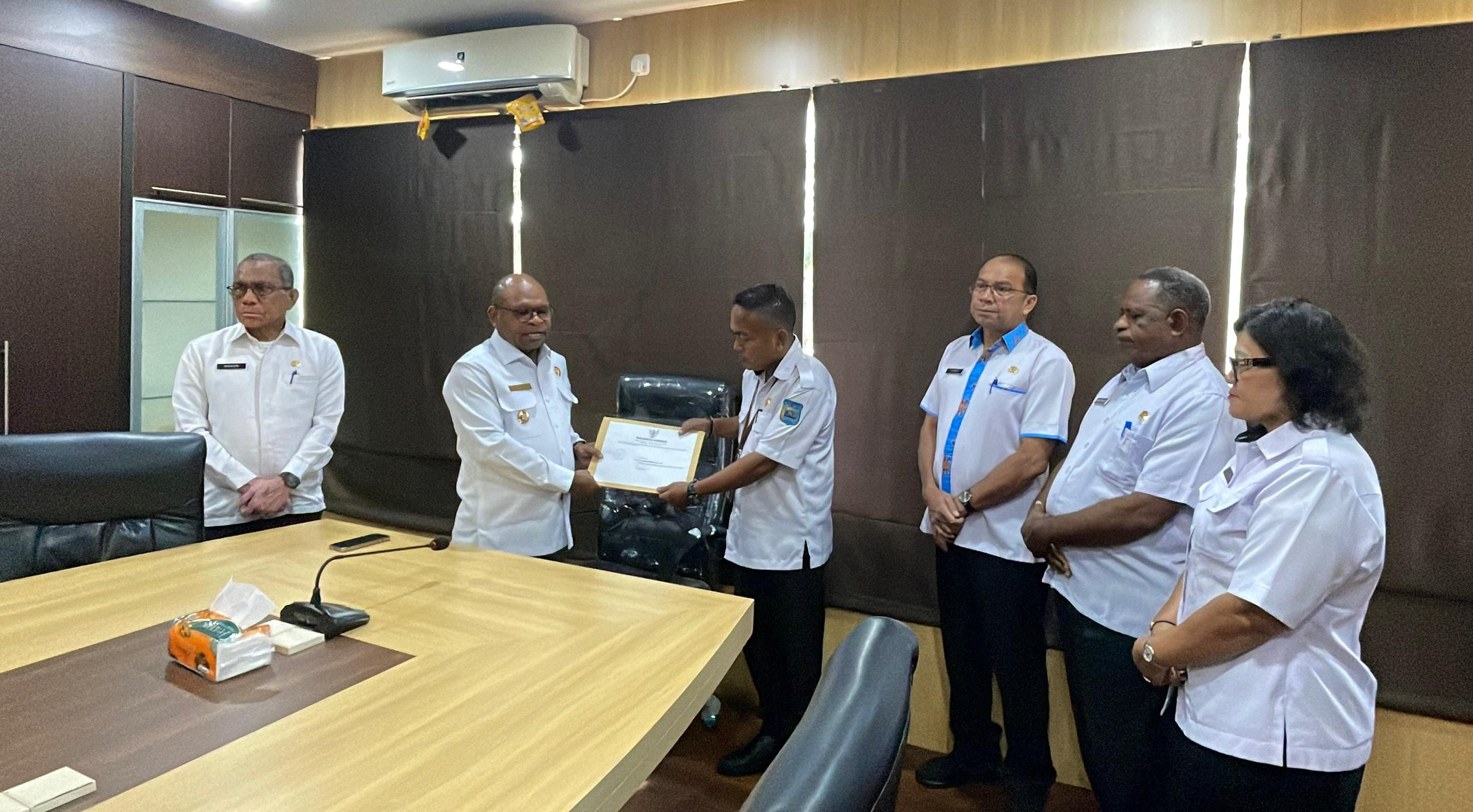 Wali Kota Serahkan SK Penunjukan James Burung sebagai Plt Kadis Kominfo Kota Sorong