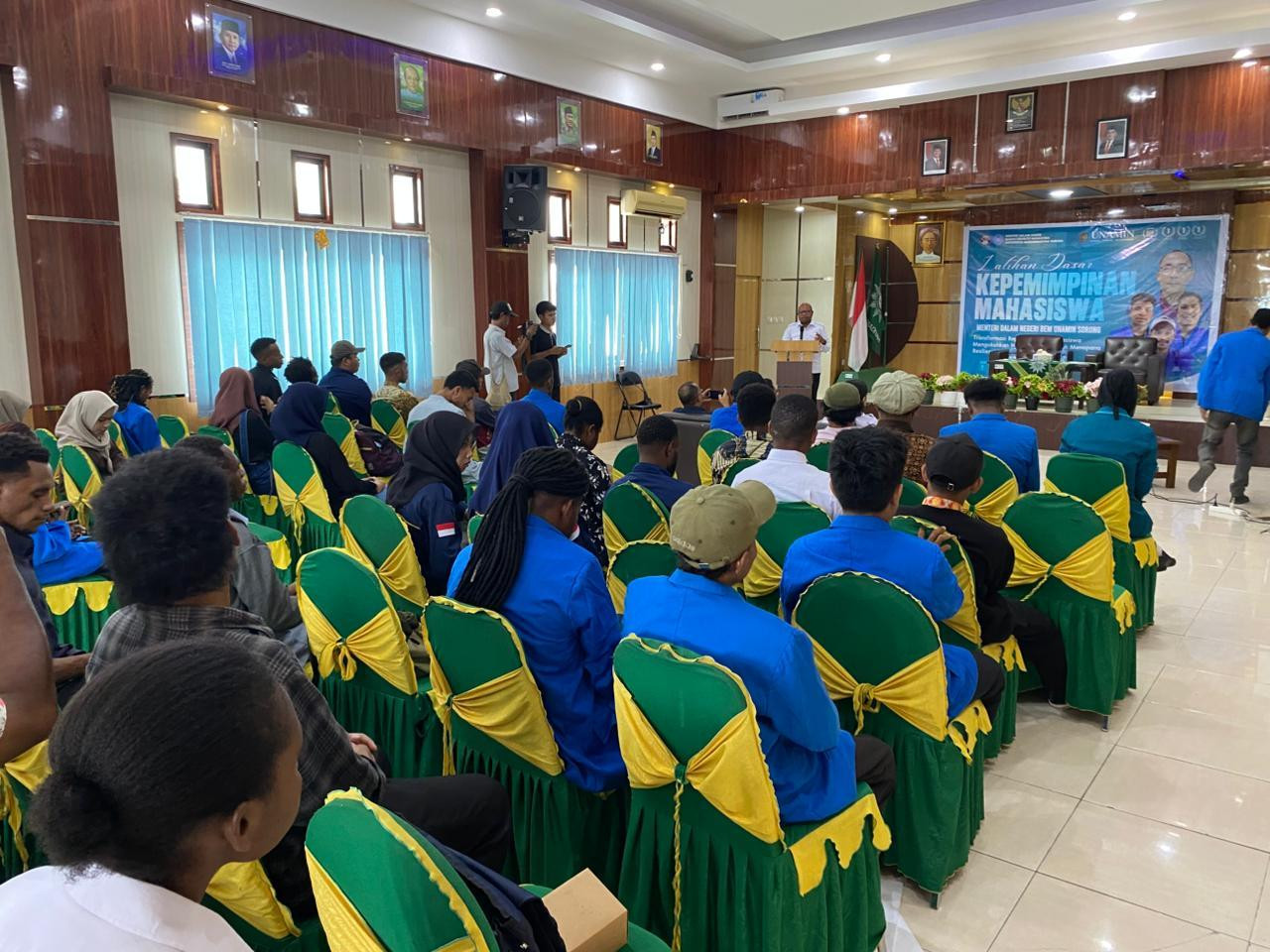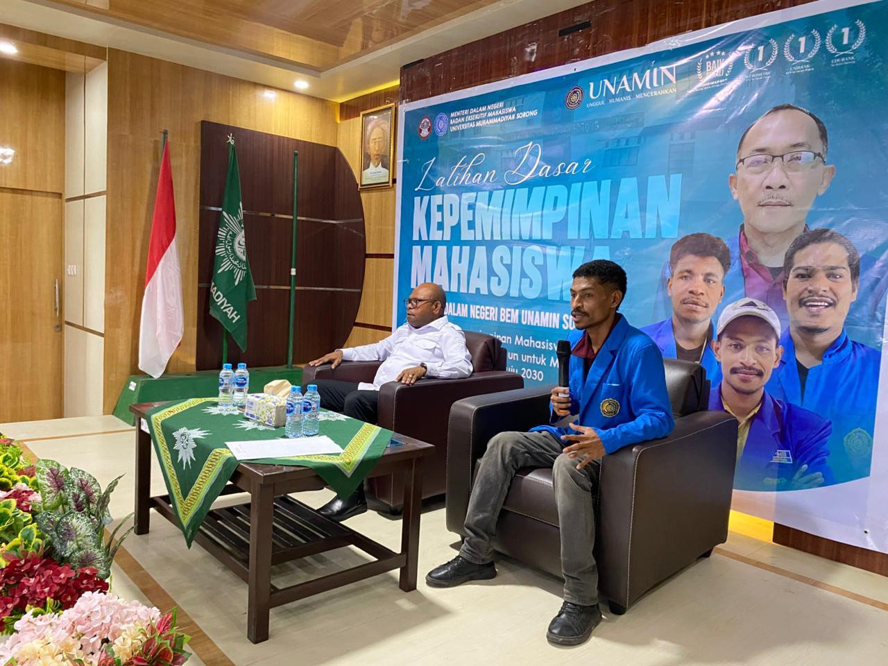 Kota Sorong - Wali Kota Sorong, Septinus Lobat, SH., MPA., hadir sebagai sebagai narasumber dalam Kegiatan Latihan Dasar Kepemimpinan Mahasiswa Menteri Dalam Negeri BEM Universitas Muhammadiyah Sorong (UMS), di aula Kampus UMS Sorong. Rabu, (21/1/2025).
