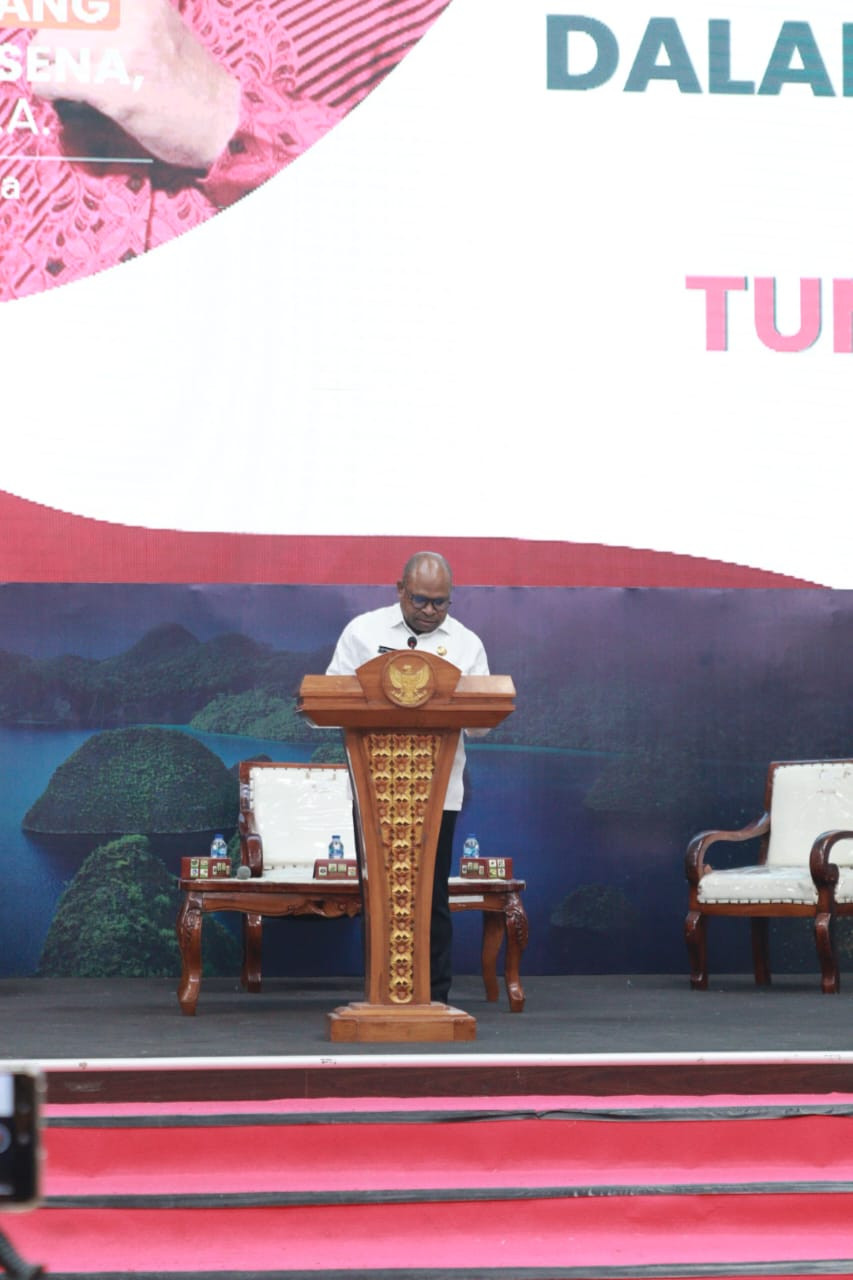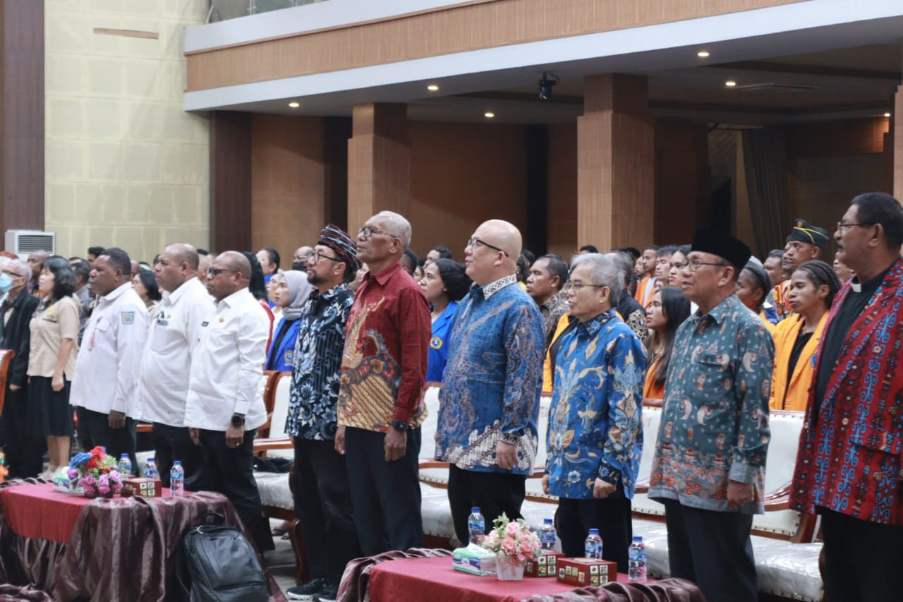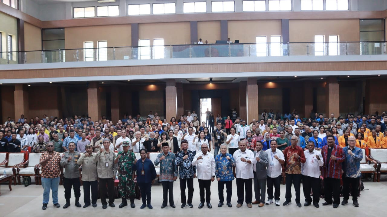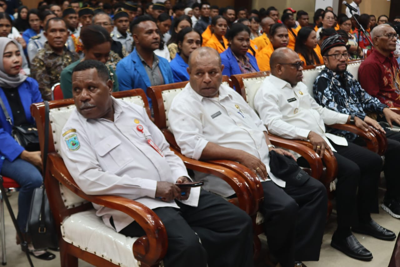 SORONG – Wali Kota Sorong, Septinus Lobat, S.H., M.P.A., membuka seminar dengan tema “Mempererat Kebangsaan dalam Bingkai Bhinneka Tunggal Ika” yang digelar atas kerja sama Forum Kerukunan Umat Beragama (FKUB), Universitas Kristen Papua (UKIP), dan Yayasan Indonesia Barokah Sejahtera (YIBS) (10/9/2025). Kegiatan yang berlangsung di Gedung Lambert Jitmau ini menghadirkan dua narasumber, yakni Dr. Bambang Noorsena, S.H., M.A., dan Yudi Latif, M.A., Ph.D. Seminar tersebut diikuti mahasiswa dari berbagai perguruan tinggi serta masyarakat Kota Sorong.