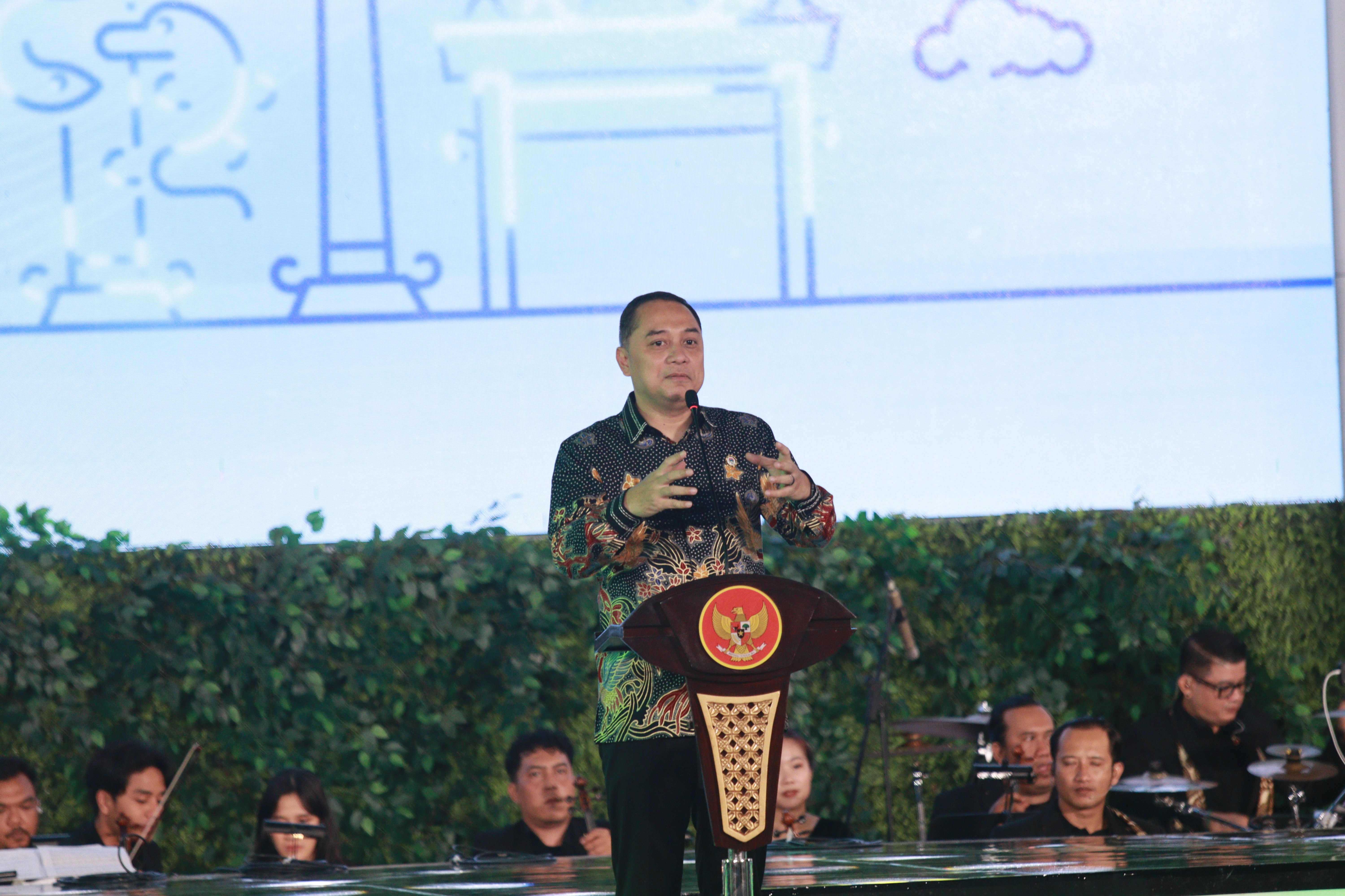 “Selamat datang Bapak dan Ibu Wali Kota seluruh Indonesia di Surabaya. Saya mengajak kita semua ayo rapatkan kolaborasi untuk mensukseskan pembangunan kota kita untuk Indonesia lebih hebat,” ujar Wali Kota Eri Cahyadi.