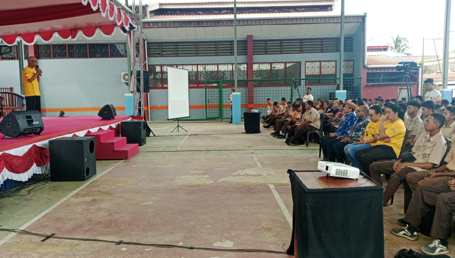 Wali Kota Sorong, Septinus Lobat, SH., MPA menghadiri kegiatan Live Dialog RRI Goes To School yang digelar di SMK Negeri 3 Kota Sorong, Sabtu (23/8/2025). Kegiatan yang diinisiasi oleh RRI Sorong ini menghadirkan para pelajar sebagai peserta utama dengan tujuan menanamkan semangat kebangsaan serta memperkuat nilai keberagaman sejak usia dini.