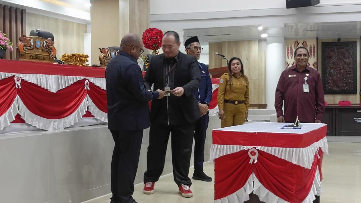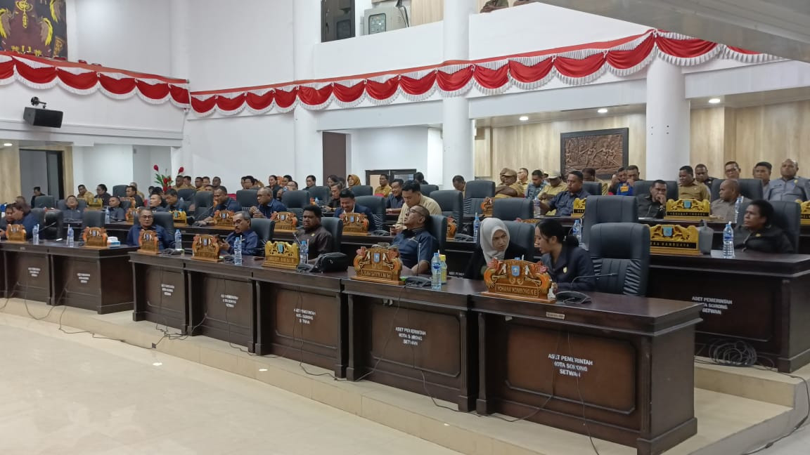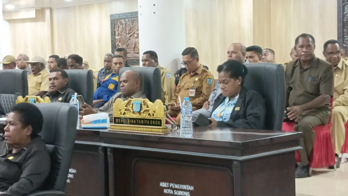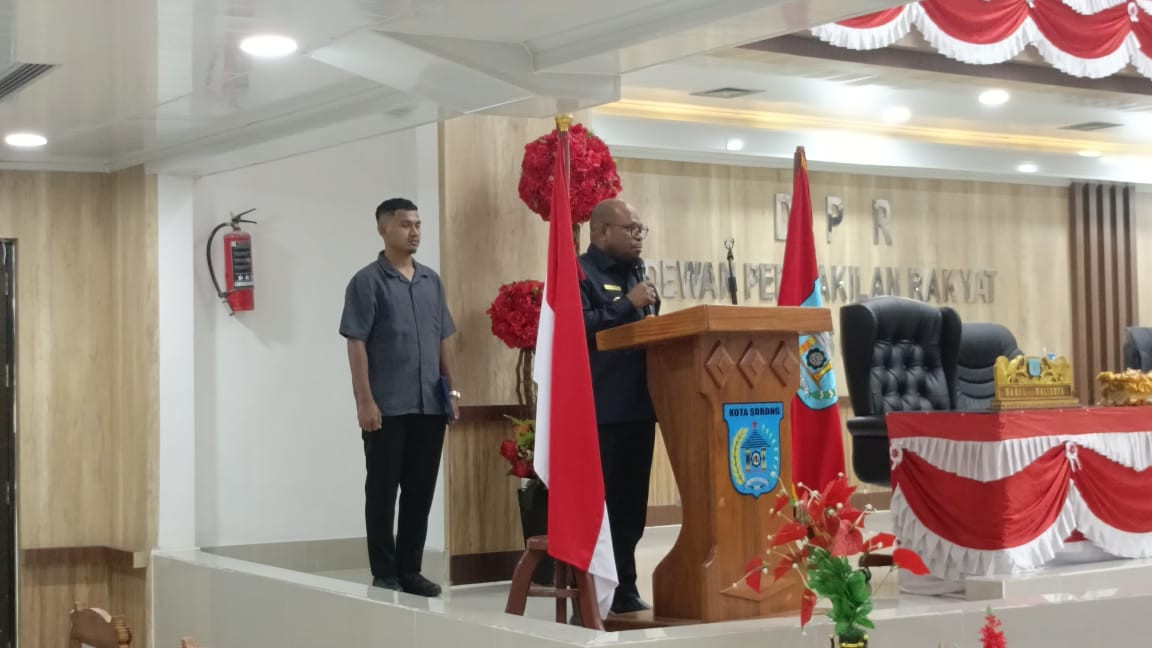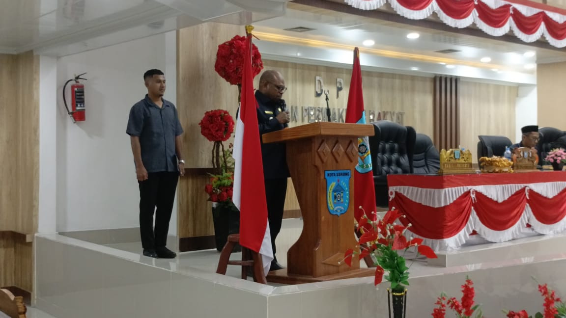 SORONG – Wali Kota Sorong, Septinus Lobat, S.H., M.P.A., menghadiri penutupan Rapat Paripurna ke-XXIV DPR Kota Sorong dengan agenda penyerahan keputusan DPR terhadap Rancangan Peraturan Daerah Pemerintah Kota Sorong tentang Perubahan Anggaran Pendapatan dan Belanja Daerah (APBD) Tahun Anggaran 2025. (30/9/2025).