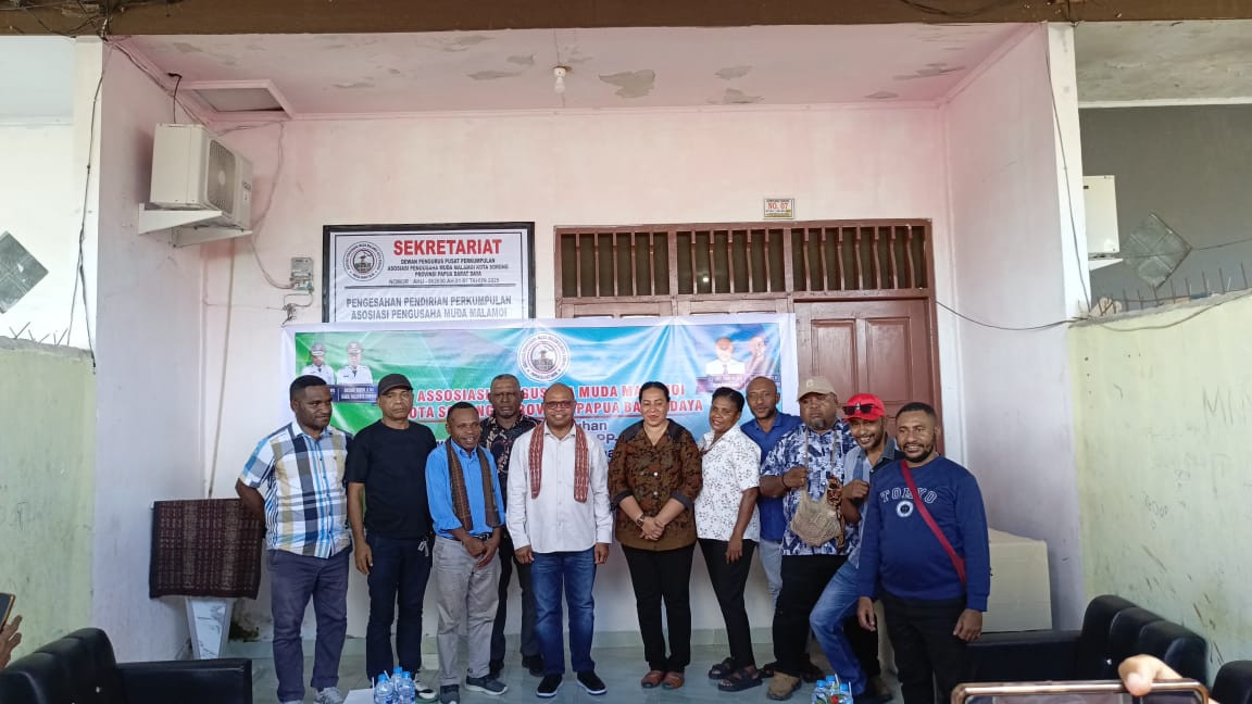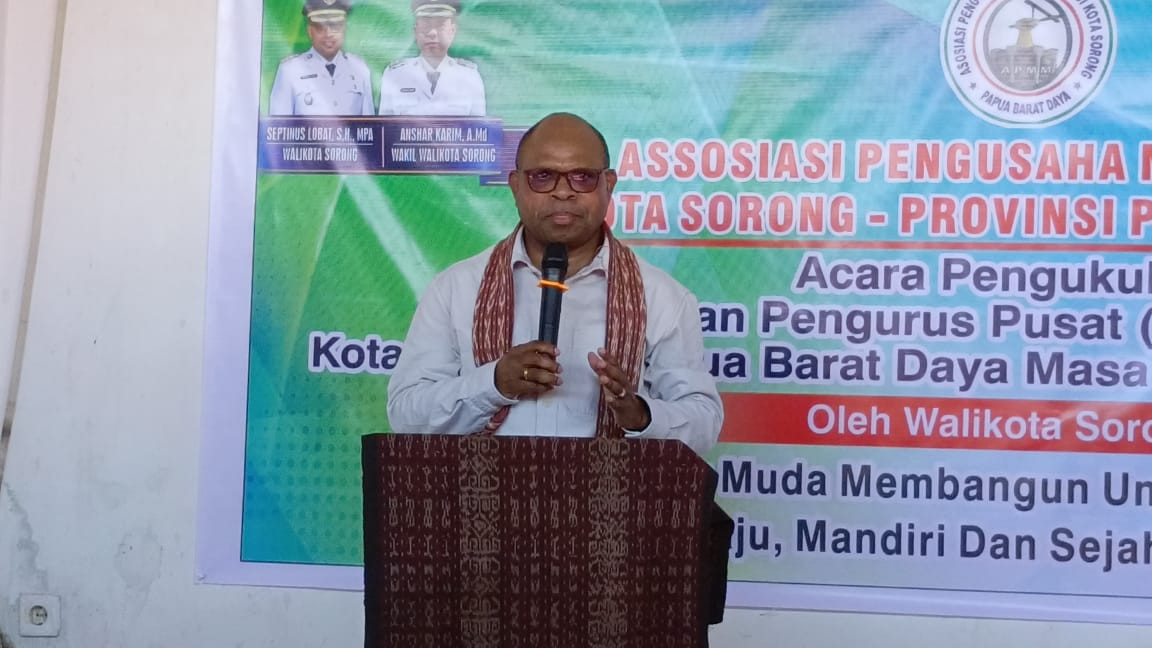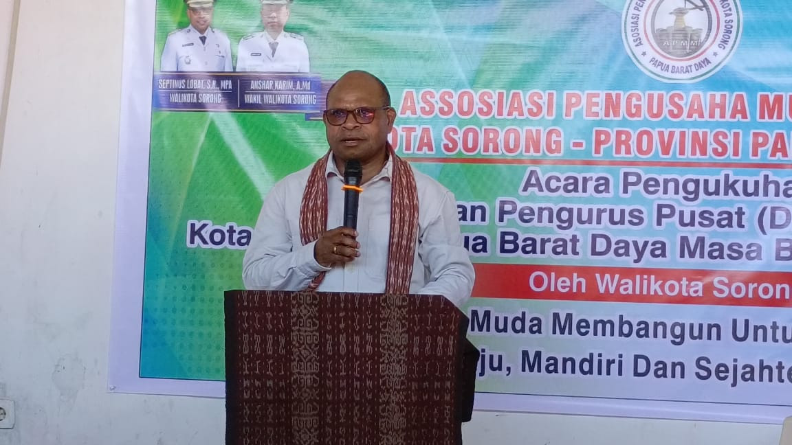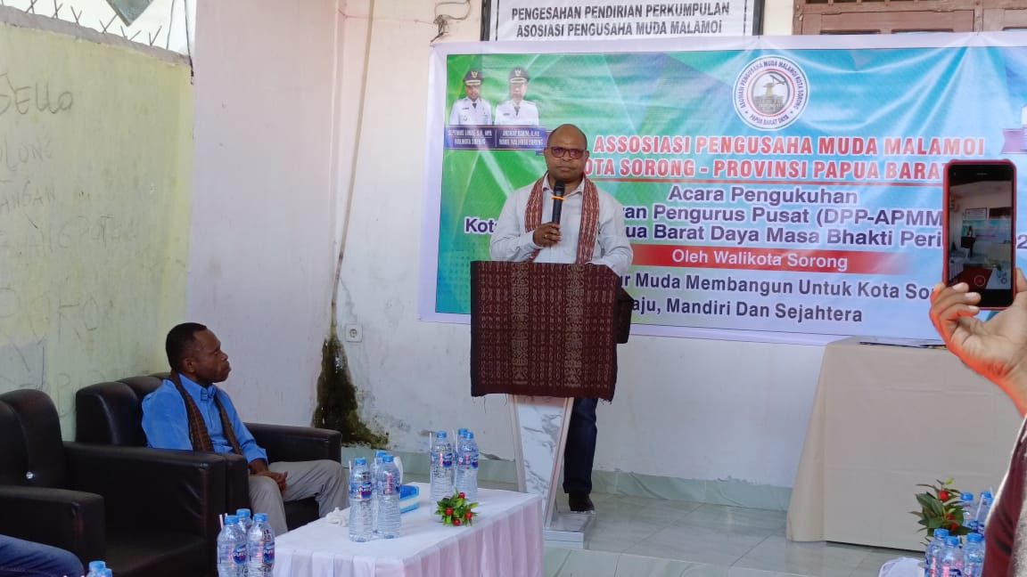 Wali Kota Sorong, Septinus Lobat, S.H., M.P.A., menghadiri sekaligus mengukuhkan Dewan Pengurus Pusat (DPP) Asosiasi Pengusaha Muda Malamoi (APMM) Kota Sorong – Provinsi Papua Barat Daya. Acara pengukuhan ini diselenggarakan oleh APMM sebagai bentuk komitmen mendorong semangat kewirausahaan di kalangan generasi muda.(1/7/2025).