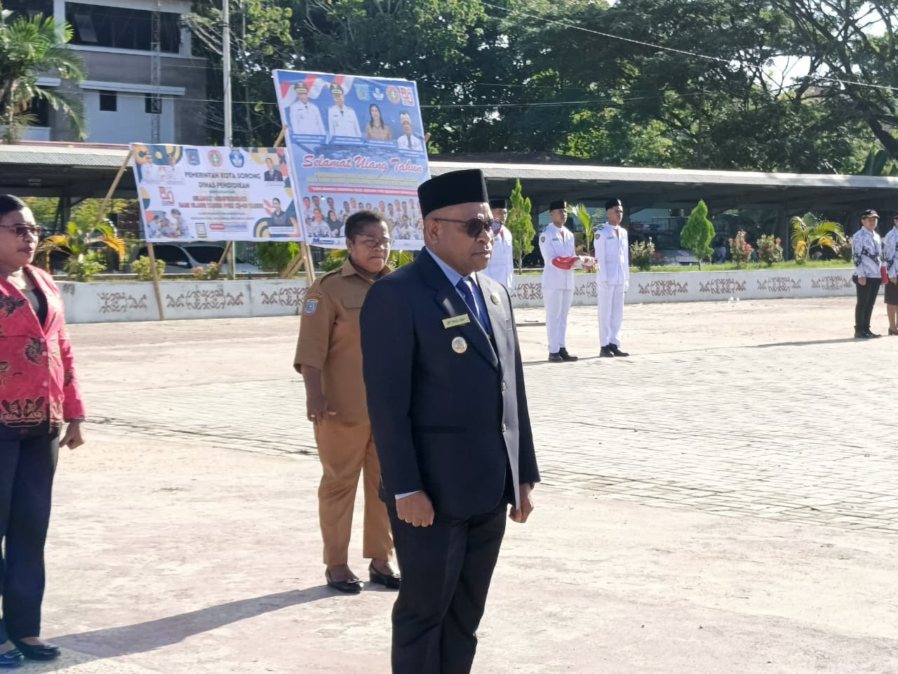 Upacara berlangsung khidmat dan menjadi momentum memperkuat komitmen bersama untuk memajukan pendidikan Indonesia. (Dinas Kominfo Kota Sorong).