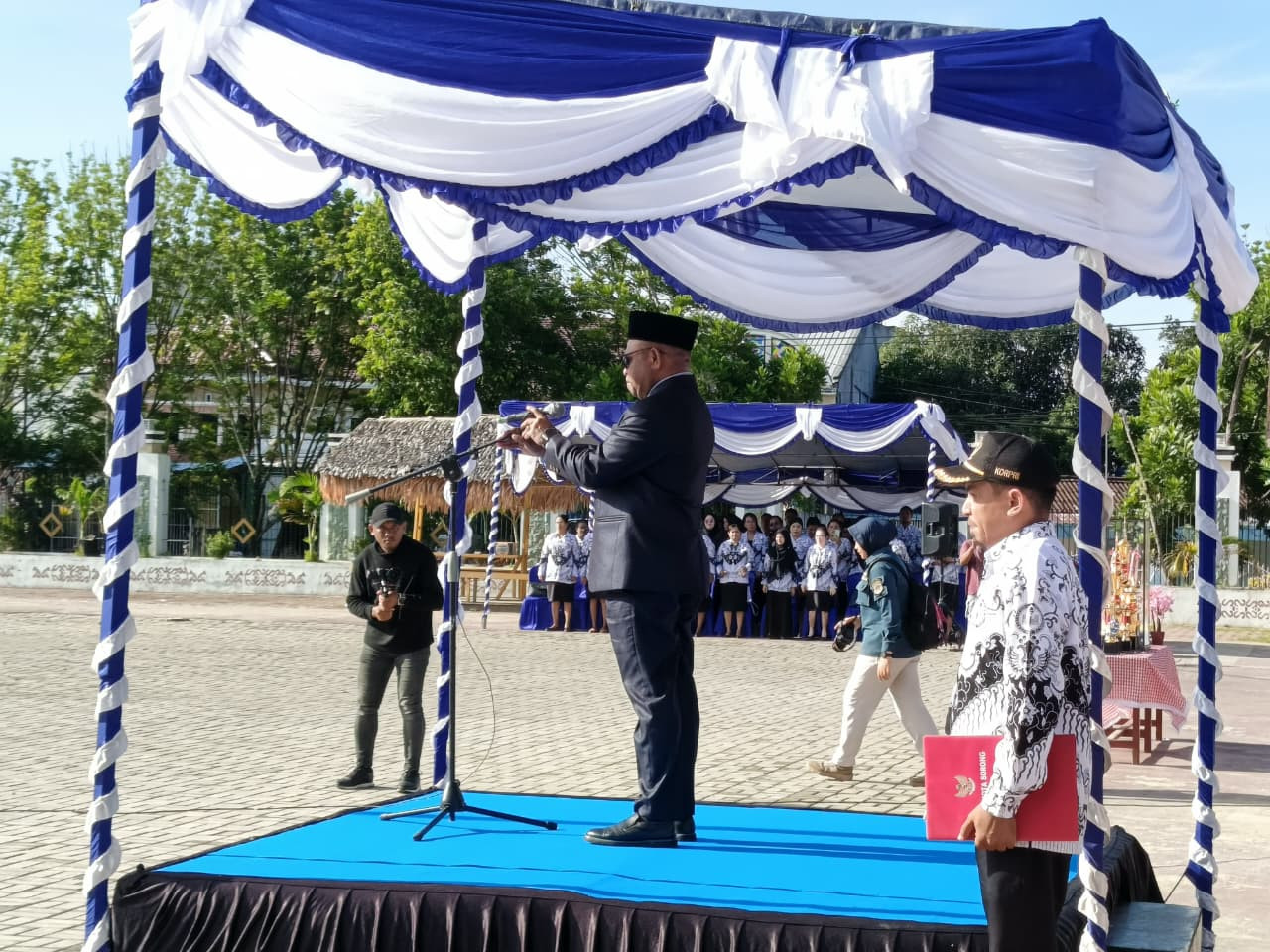 Kota Sorong - Wali Kota Sorong, Septinus Lobat, S.H., MPA., menjadi Inspektur pada Upacara dalam rangka Memperingati Hari Guru Nasional, dihadiri juga oleh Wakil Wali Kota Sorong, H. Anshar Karim, A.Md., FORKOPIMDA, Pimpinan OPD, Guru, dan Tamu Undangan, dengan Tema "Guru Hebat, Indonesia Kuat". Lapangan Landscape, Kantor Wali Kota Sorong. Selasa, (25/11/2025). Wali Kota Sorong juga membacakan Sambutan Hari Guru Nasional Tahun 2025 oleh Ketua Umum Pengurus Besar PGRI Republik Indonesia.
