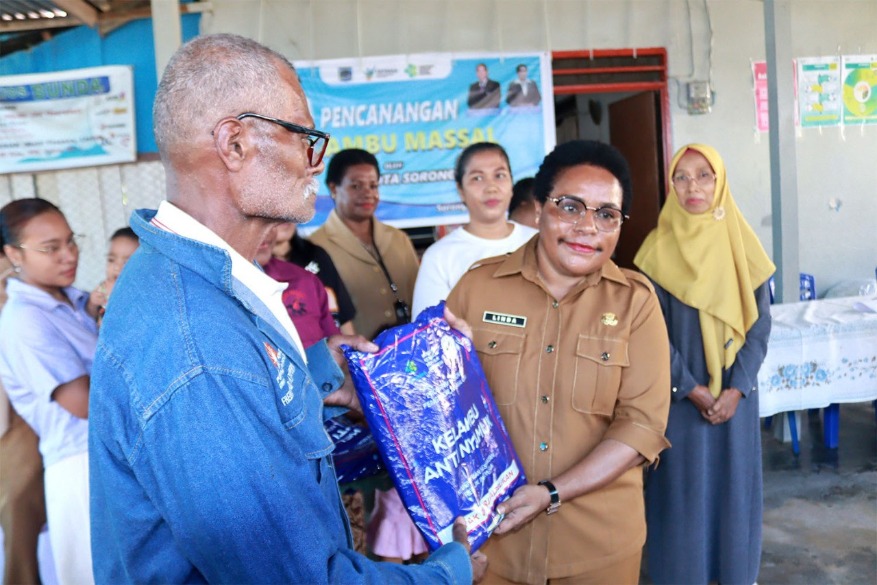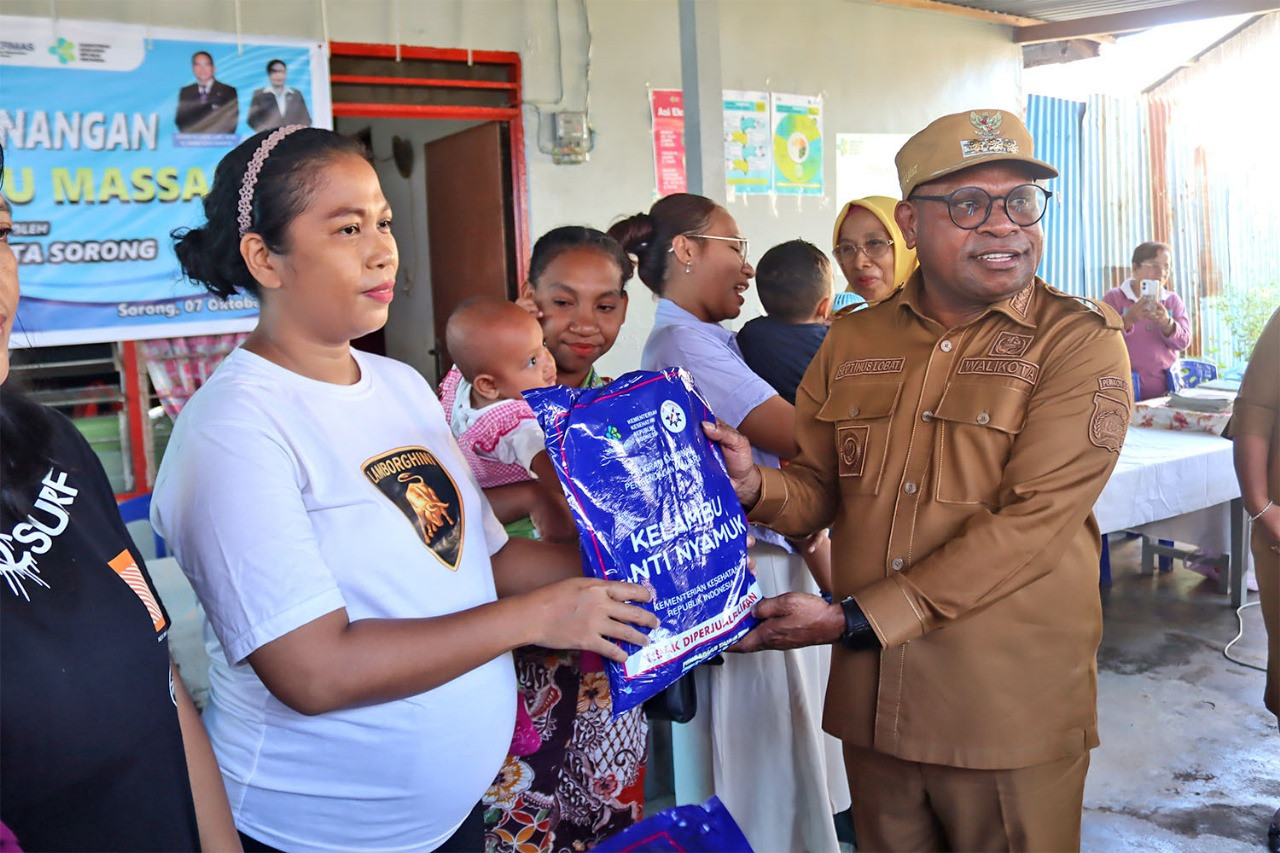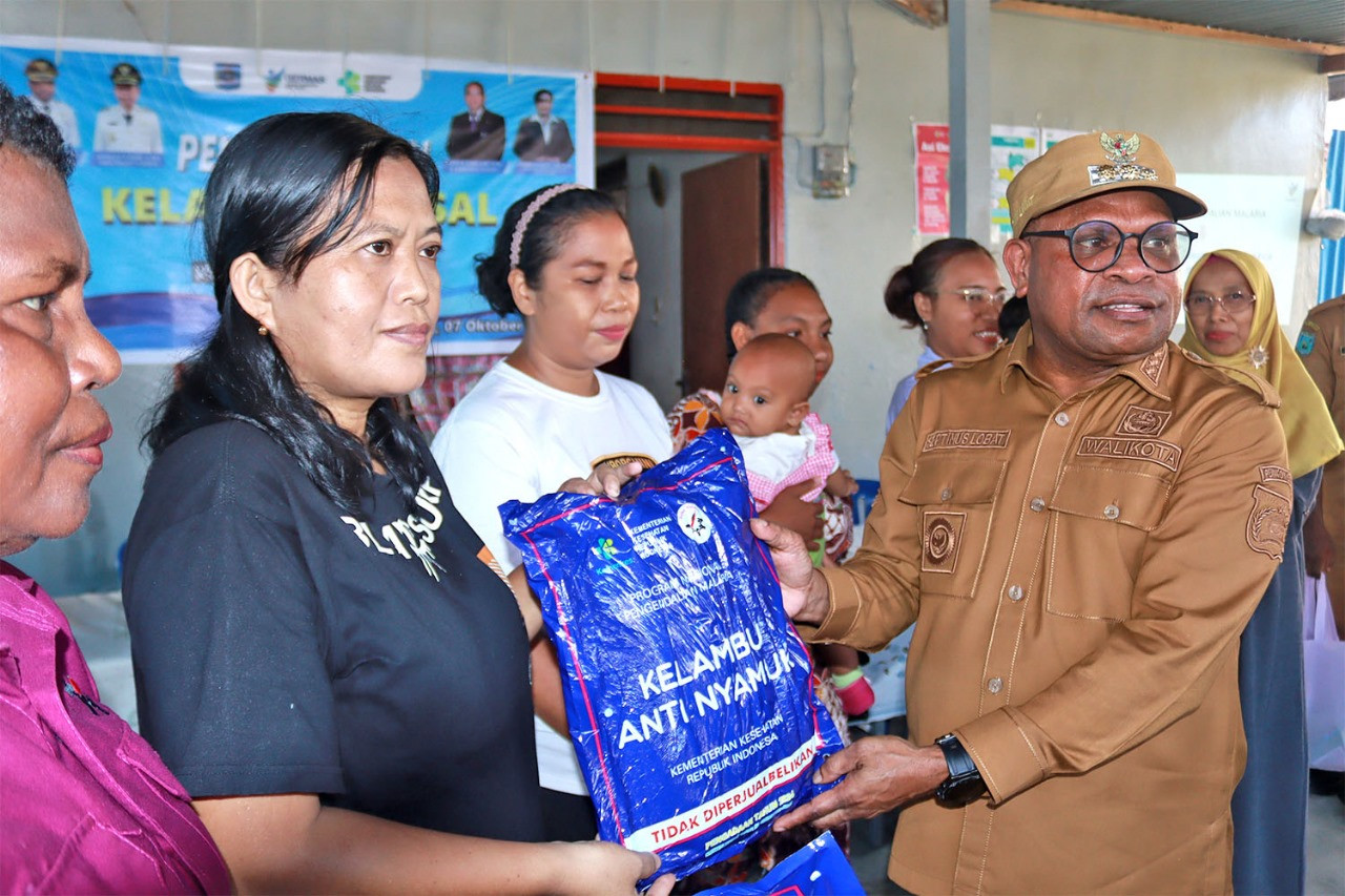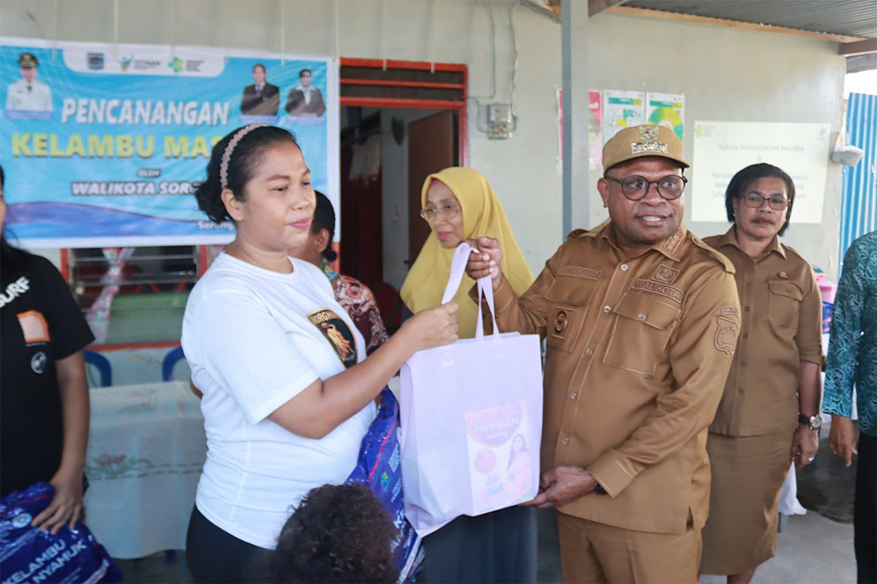 Kota Sorong - Pemerintah Kota Sorong menegaskan komitmennya untuk mempercepat eliminasi malaria, dengan mencanangkan pembagian kelambu berinsektisida secara massal, yang dilakukan Wali Kota Sorong, Septinus Lobat, S.H., MPA di Posyandu Bahagia, Jalan Gurami, Kelurahan Klawasi, Distrik Sorong Barat, pada Selasa (7/10/2025) pagi.