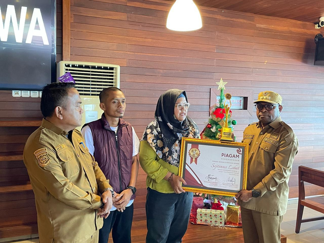 Wali Kota Sorong Septinus Lobat, S.H., MPA. menerima Sorongnews Award ke-2 Tahun 2025 dalam kategori Tokoh Pemerintah Inspiratif Kota Sorong. Penghargaan tersebut diserahkan langsung oleh Pimpinan Redaksi Sorongnews.com, Olha Irianti Mulalinda, M.H sebagai bentuk apresiasi atas kepemimpinan dan kontribusi beliau dalam menjalankan pemerintahan di Kota Sorong. Senin, (29/12/2025).