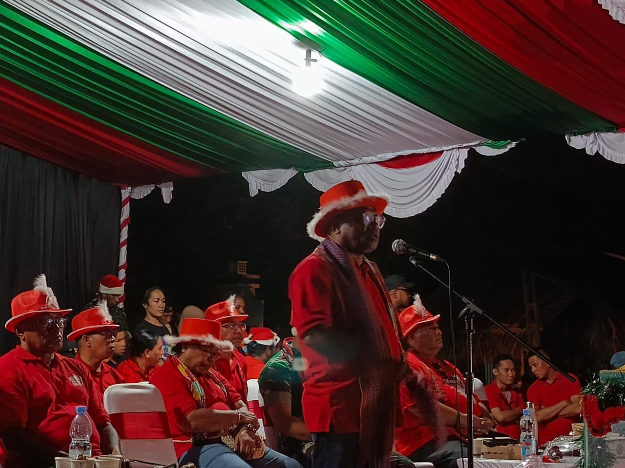 Kota Sorong – Wali Kota Sorong, Septinus Lobat, S.H., MPA, memberikan sambutan pada Malam Pencanangan Bulan Natal 2025 Pemerintah Kota Sorong, Senin malam. Dalam sambutannya, Wali Kota mengajak seluruh umat beragama, khususnya warga gereja, untuk mensyukuri perjalanan hidup sepanjang tahun 2025. Lapangan Landscape, Halaman Kantor Wali Kota Sorong. Senin, (1/12/2025).