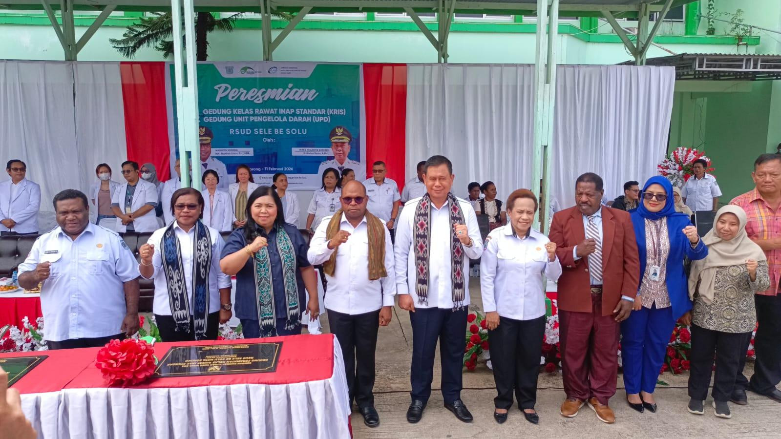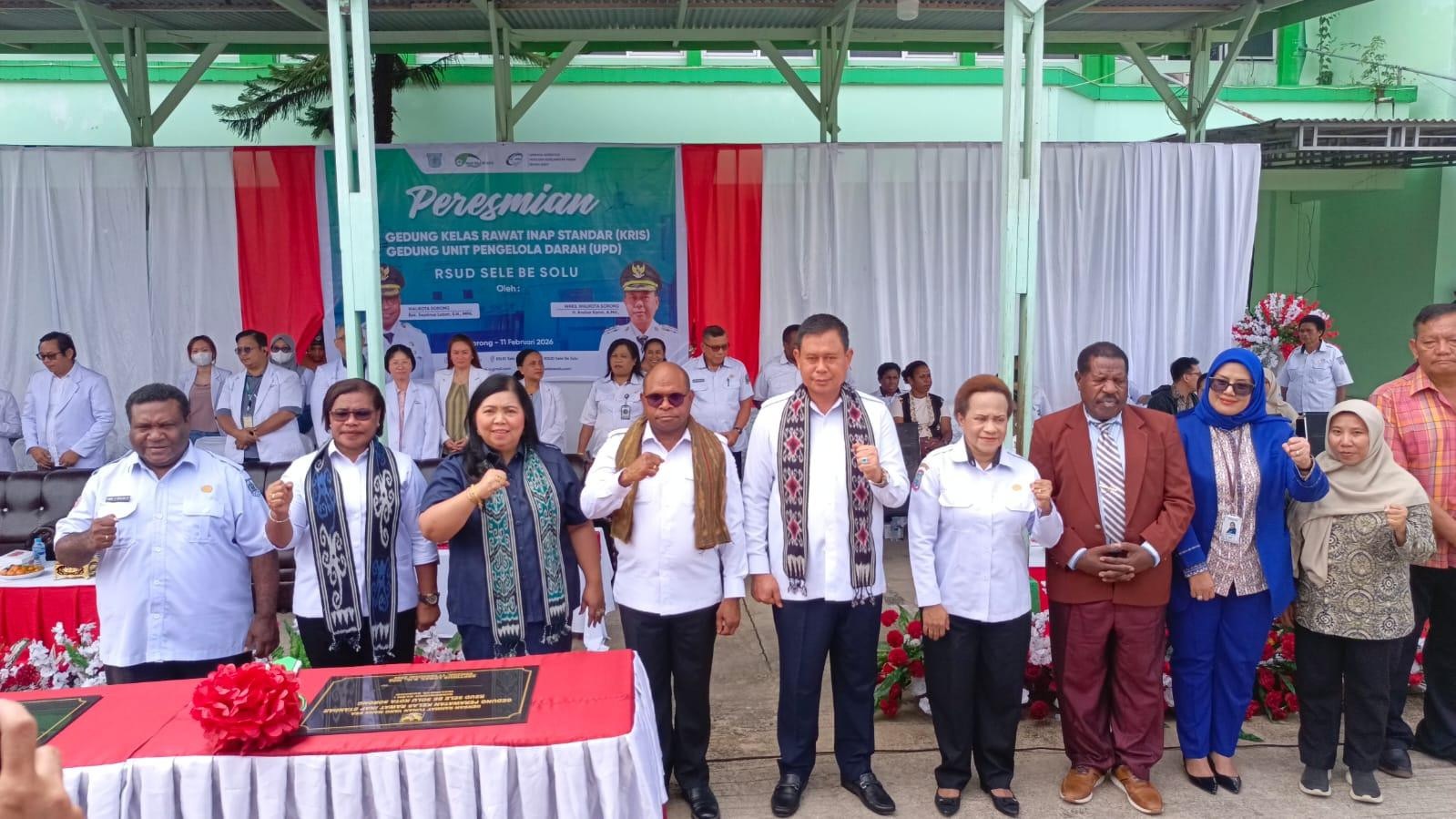 Wali Kota Sorong, Septinus Lobat, S.H., M.P.A., meresmikan Gedung Kelas Rawat Inap Standar (KRIS) dan Gedung Unit Pengelola Darah (UPD) di RSUD Sele Be Solu, Rabu. Peresmian tersebut turut dihadiri Wakil Wali Kota Sorong, H. Anshar Karim, A.Md., serta Kepala Dinas Kesehat dan Kepala BPKAD Kota Sorong, (11/2/2026).