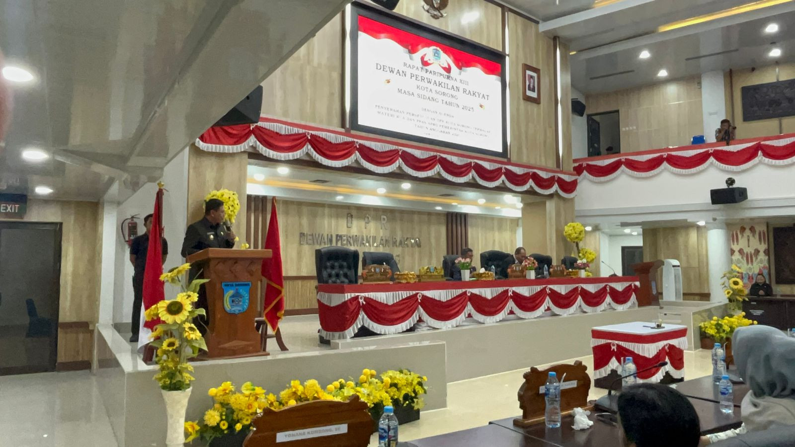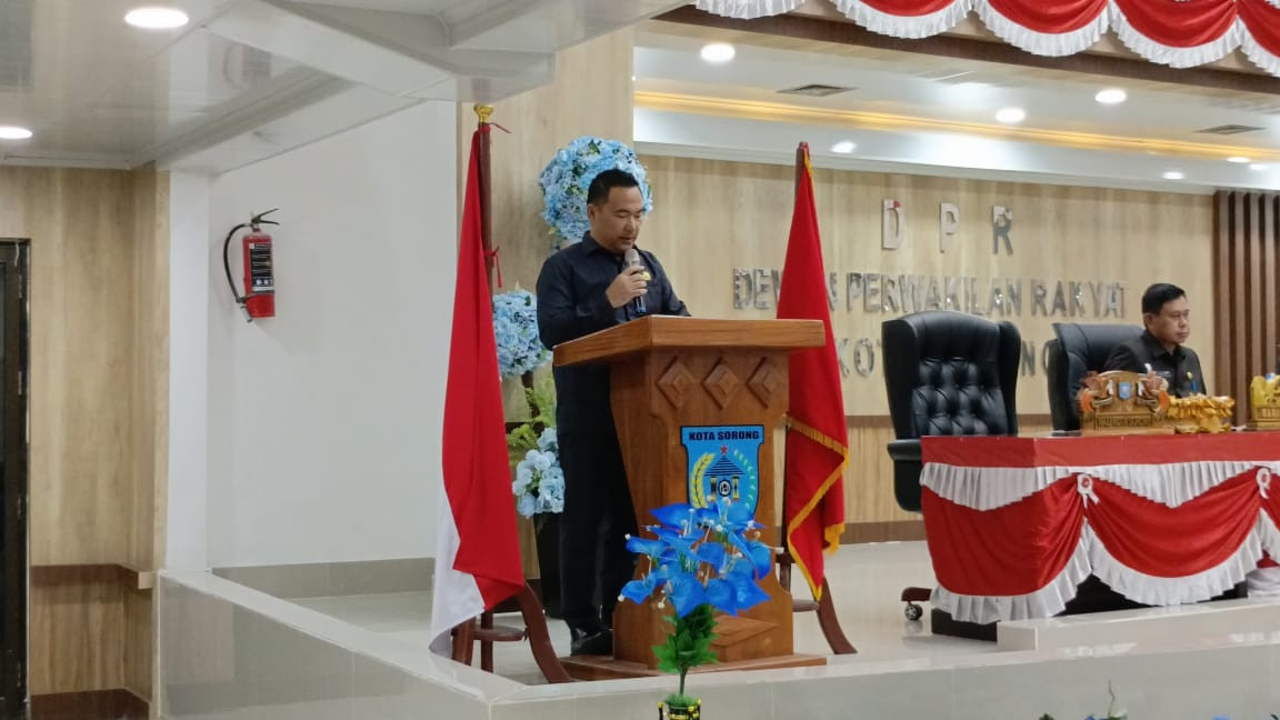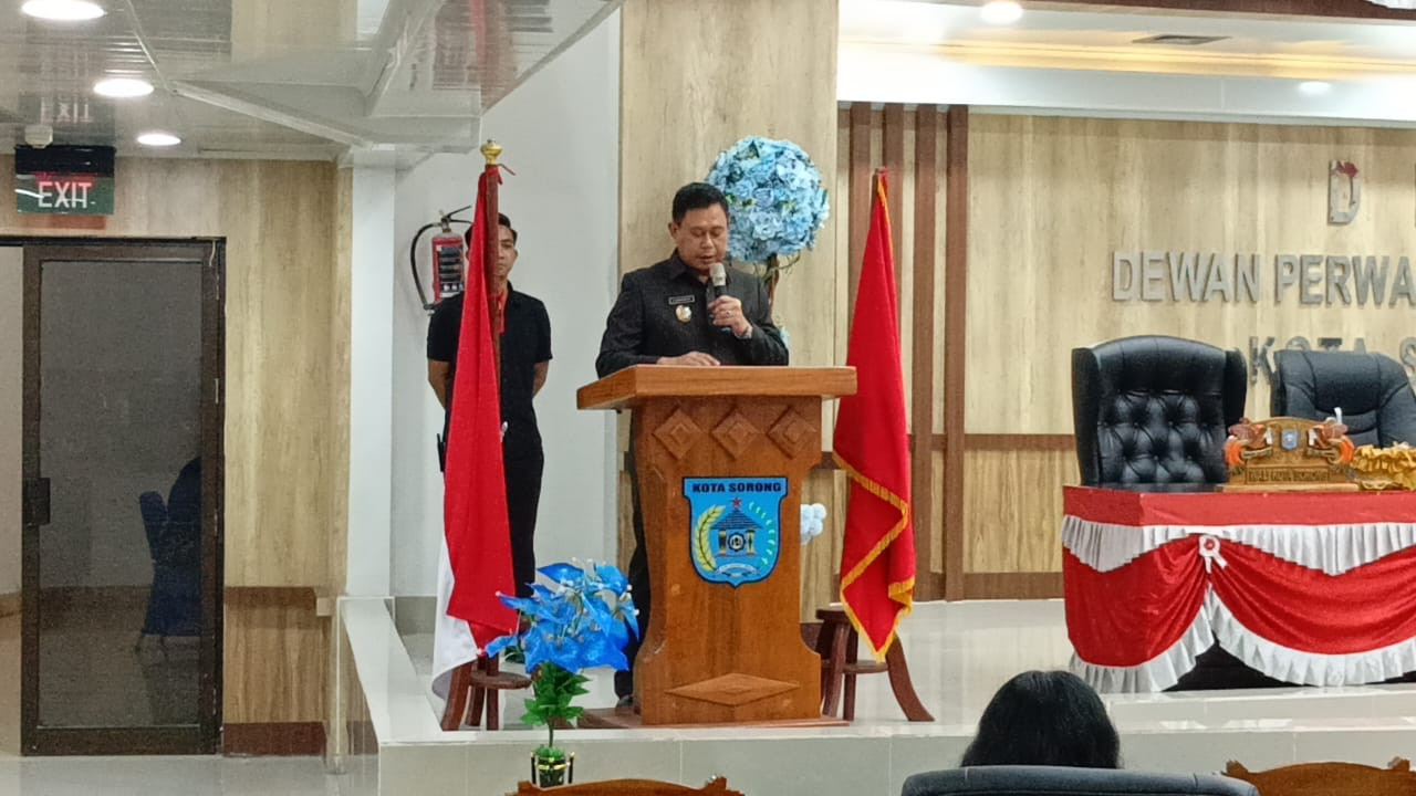 Wali Kota Sorong diwakili oleh Wakil Wali Kota Sorong, H. Anshar Karim, A.Md., yang membacakan Pendapat Akhir Kepala Daerah terhadap hasil pembahasan KUA dan PPAS RAPBD Kota Sorong Tahun Anggaran 2026. Rapat ini dihadiri oleh para anggota DPR Kota Sorong serta jajaran pimpinan Organisasi Perangkat Daerah (OPD) di lingkungan Pemerintah Kota Sorong.