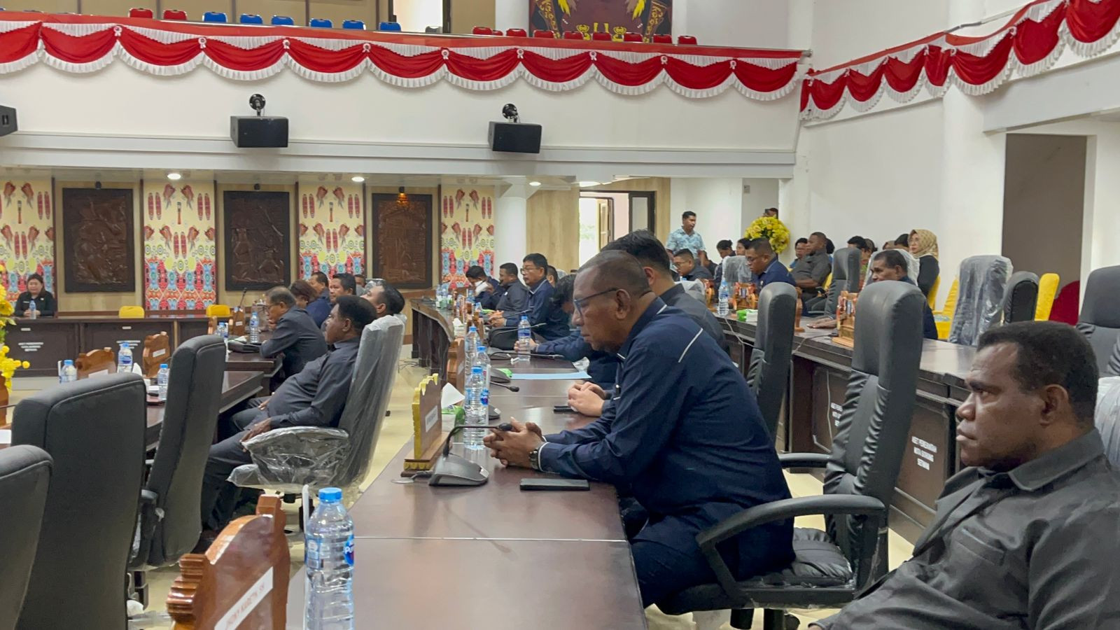 Rapat Pleno V Paripurna XIII DPR Kota Sorong Masa Sidang Tahun 2025 dengan agenda laporan Badan Anggaran (Banggar) DPR Kota Sorong terhadap hasil pembahasan materi Kebijakan Umum Anggaran (KUA) dan Prioritas Plafon Anggaran Sementara (PPAS) RAPBD Pemerintah Kota Sorong Tahun Anggaran 2026 digelar di ruang sidang DPR Kota Sorong, Rabu (24/7/2025).