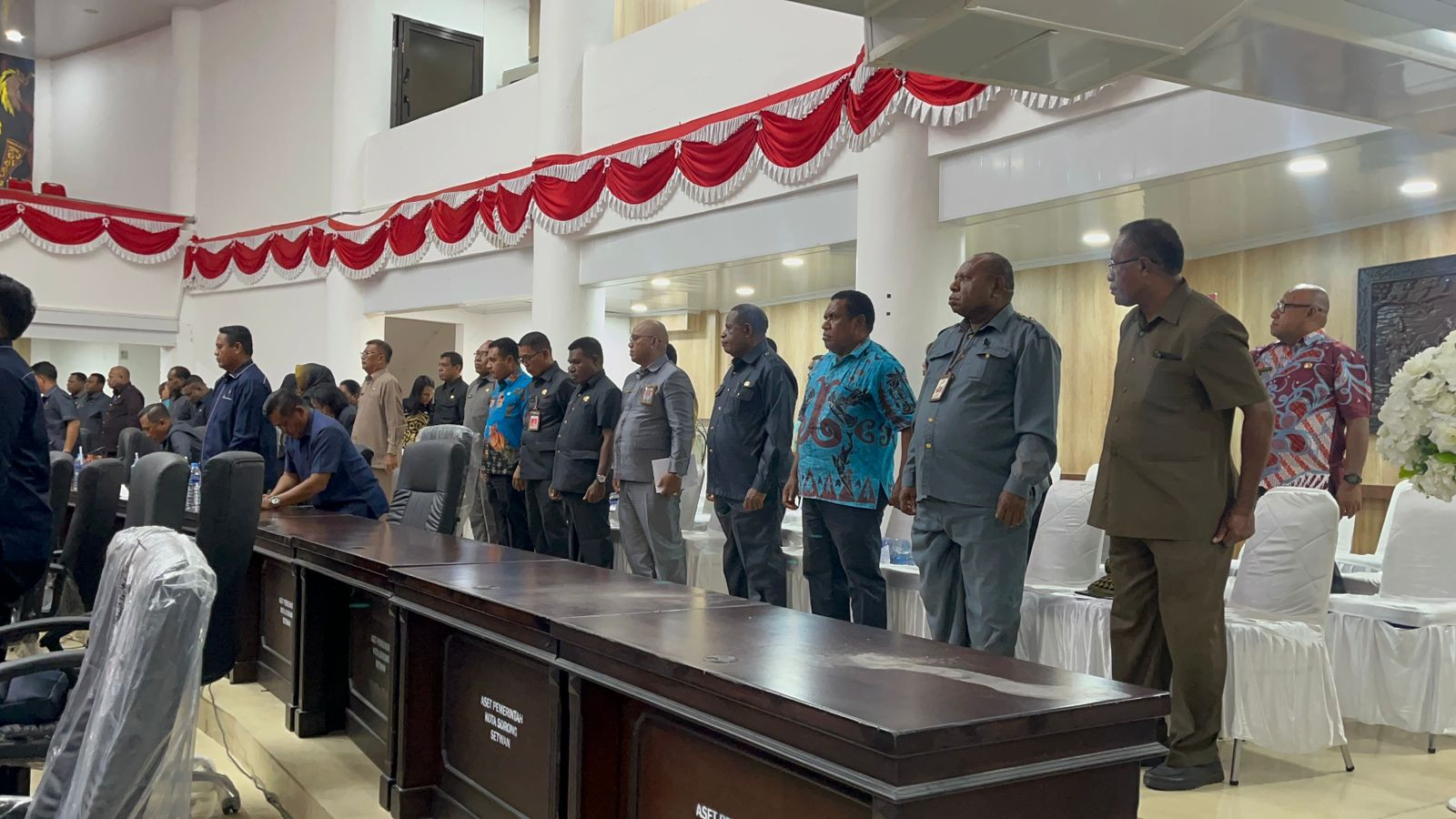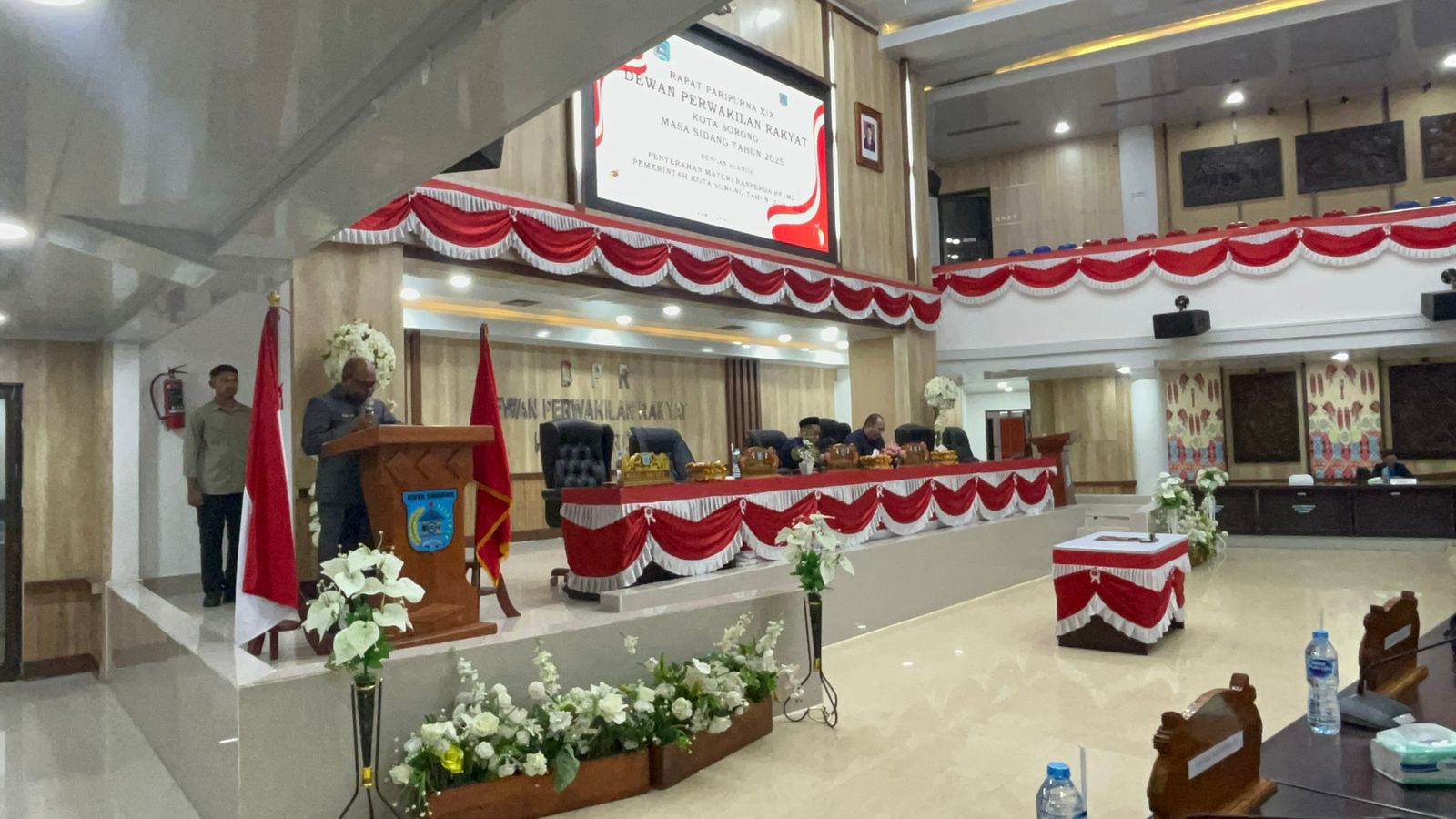 Wali Kota Sorong, Septinus Lobat, S.H., M.P.A., menghadiri Rapat Paripurna XIX Masa Sidang Tahun 2025 dengan agenda penyerahan dan pembahasan materi Raperda Rencana Pembangunan Jangka Menengah Daerah (RPJMD) Pemerintah Kota Sorong Tahun 2025–2029 yang berlangsung di Kantor DPR Kota Sorong. (28/8/2025)