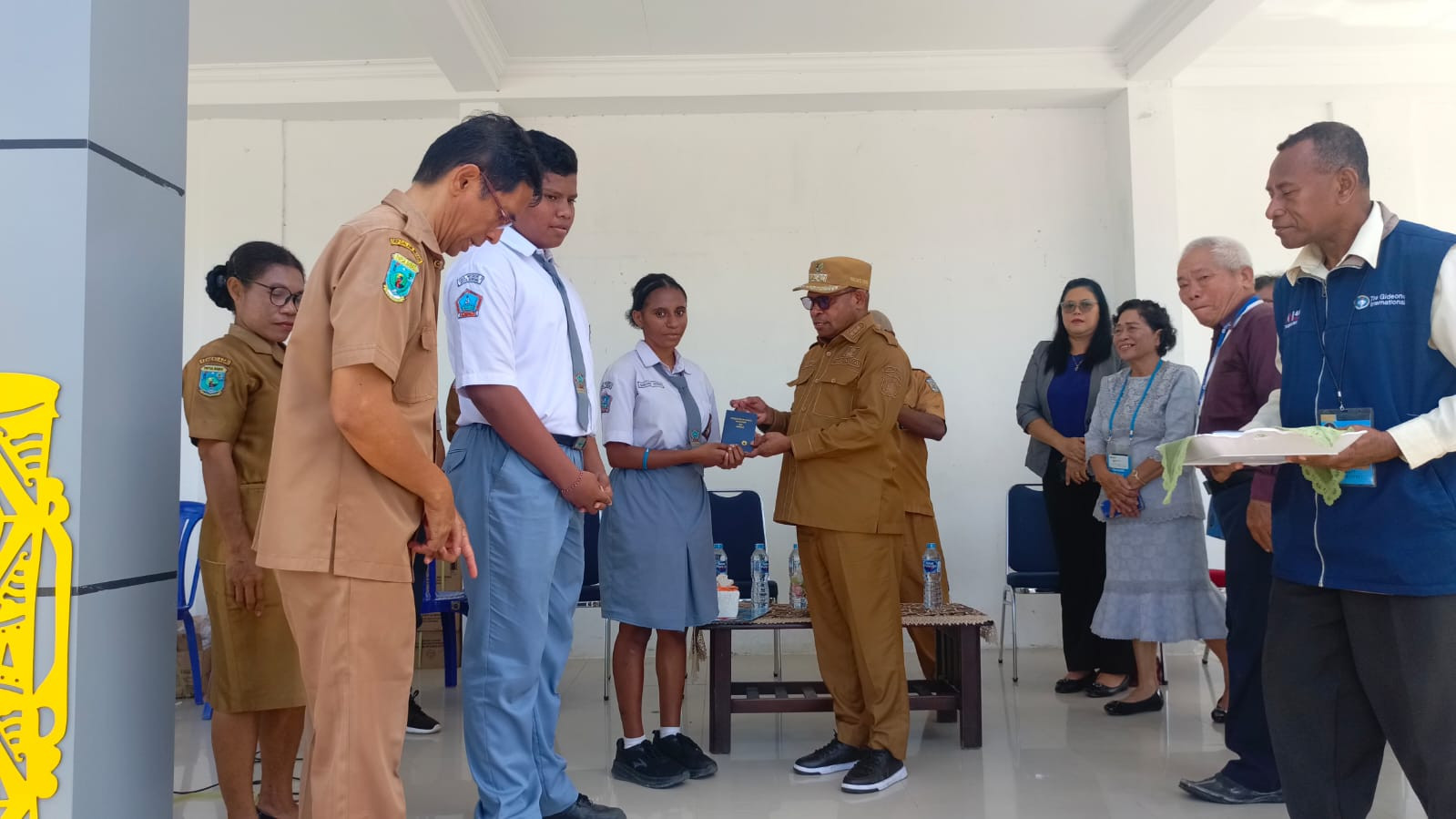 Sorong, 5 Agustus 2025 — Wali Kota Sorong, Septinus Lobat, S.H., M.P.A., menyerahkan secara simbolis 1.700 Alkitab dari The Gideons International Camp Sorong kepada para siswa di dua sekolah, yakni SMA Negeri 3 Kota Sorong sebanyak 900 alkitab dan SD Negeri 21 Kota Sorong sebanyak 800 alkitab