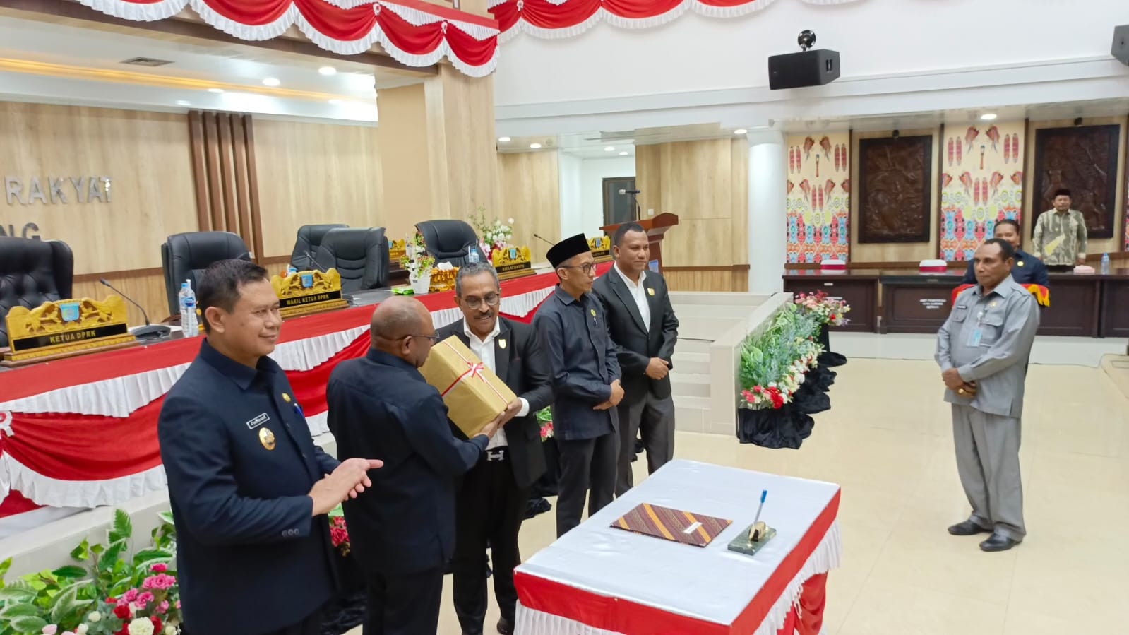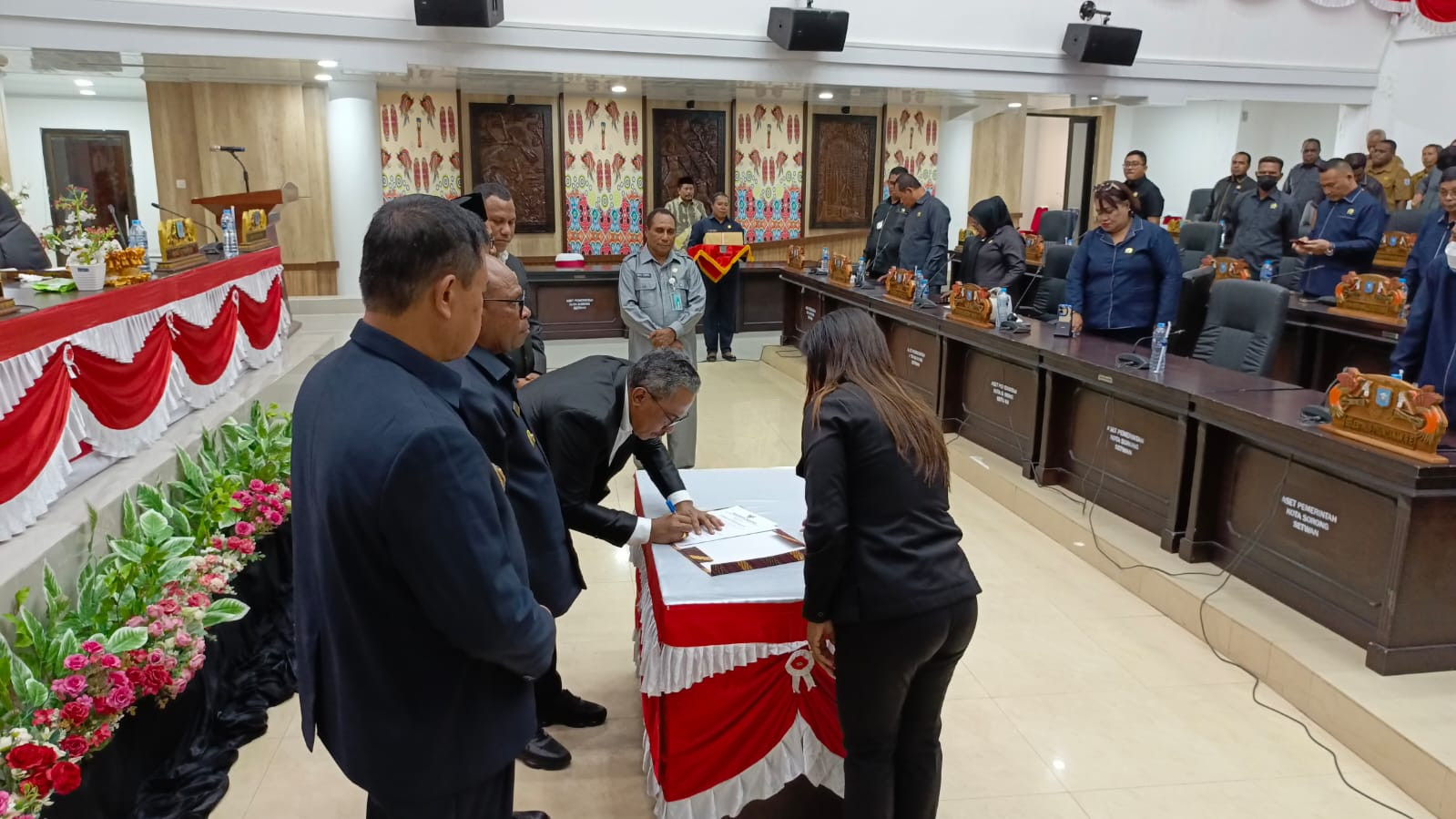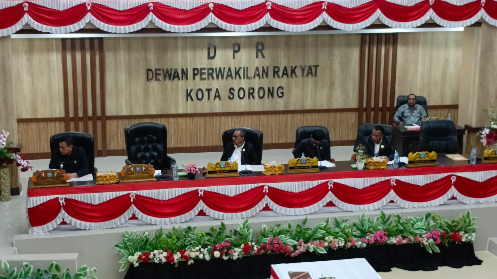 Rapat paripurna tersebut dipimpin oleh Ketua DPR Kota Sorong, Jhon Lawerissa, serta dihadiri para Wakil Ketua DPR, seluruh anggota dewan dari berbagai fraksi, Wakil Wali Kota Sorong, Sekretaris Daerah, Forkopimda, dan para Kepala OPD di lingkungan Pemerintah Kota Sorong.
