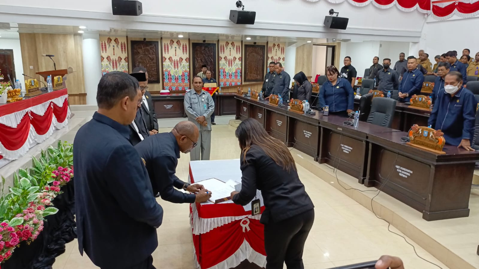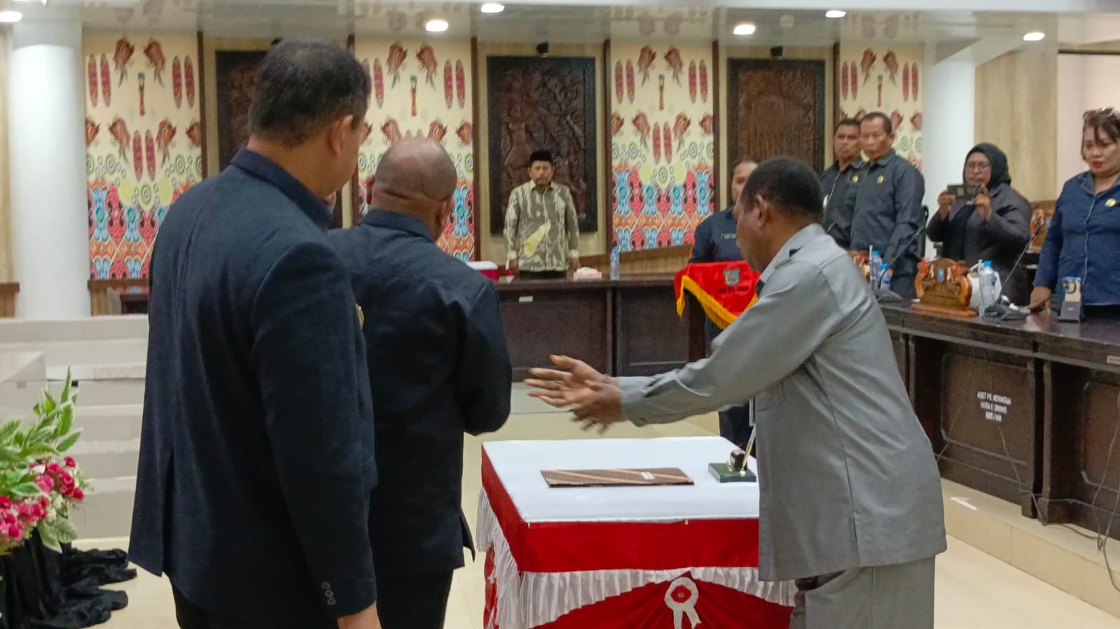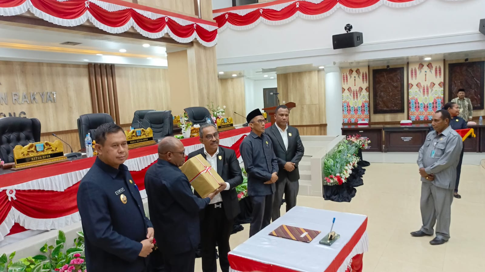 Rapat paripurna tersebut dipimpin oleh Ketua DPR Kota Sorong, Jhon Lawerissa, serta dihadiri para Wakil Ketua DPR, seluruh anggota dewan dari berbagai fraksi, Wakil Wali Kota Sorong, Sekretaris Daerah, Forkopimda, dan para Kepala OPD di lingkungan Pemerintah Kota Sorong.