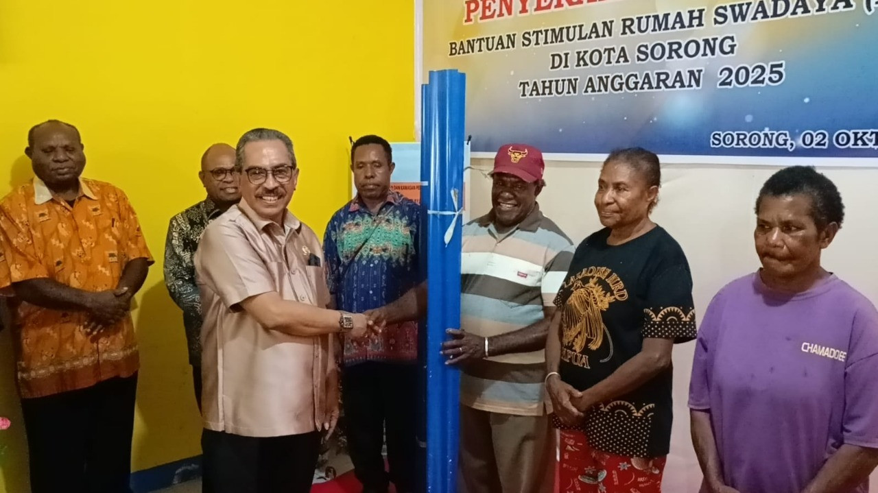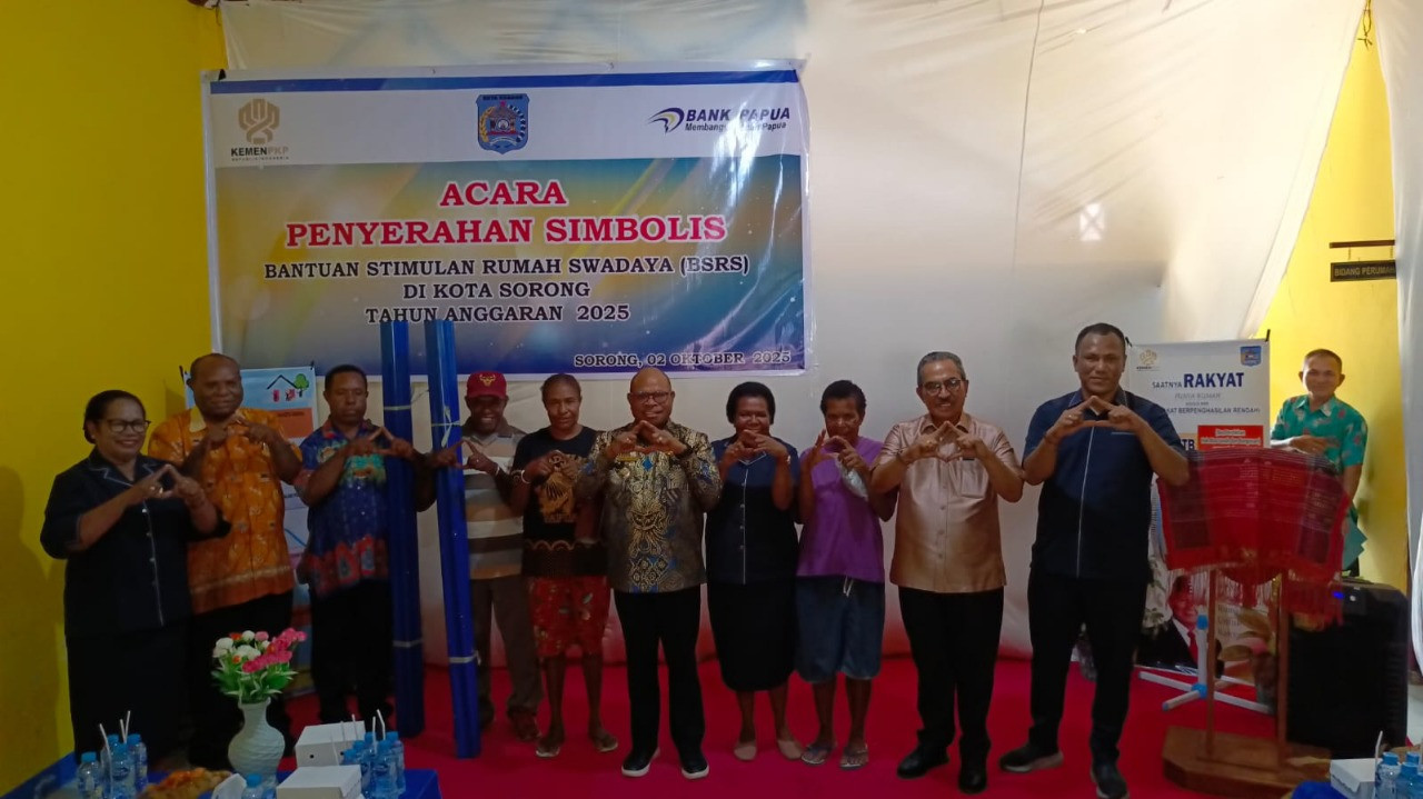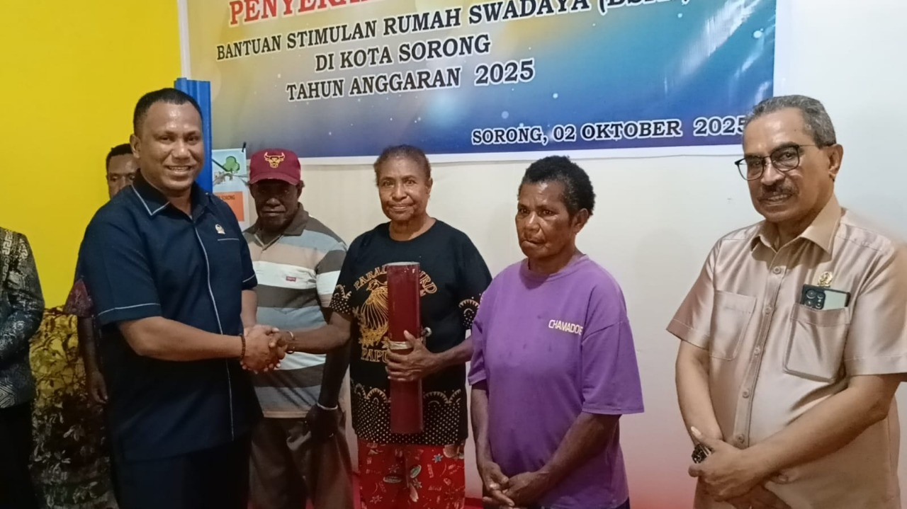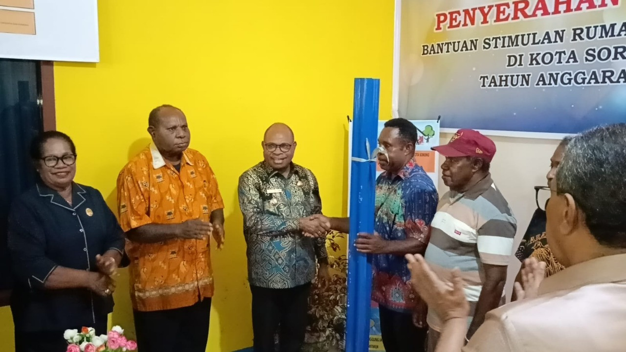 SORONG – Wali Kota Sorong, Septinus Lobat, S.H., M.P.A., secara simbolis menyerahkan Bantuan Stimulan Rumah Swadaya (BSRS) Tahun Anggaran 2025 yang dilaksanakan oleh Dinas Perumahan Kota Sorong. Program ini menjadi salah satu bentuk kepedulian pemerintah daerah dalam membantu masyarakat mewujudkan rumah layak huni (2/10/2025).