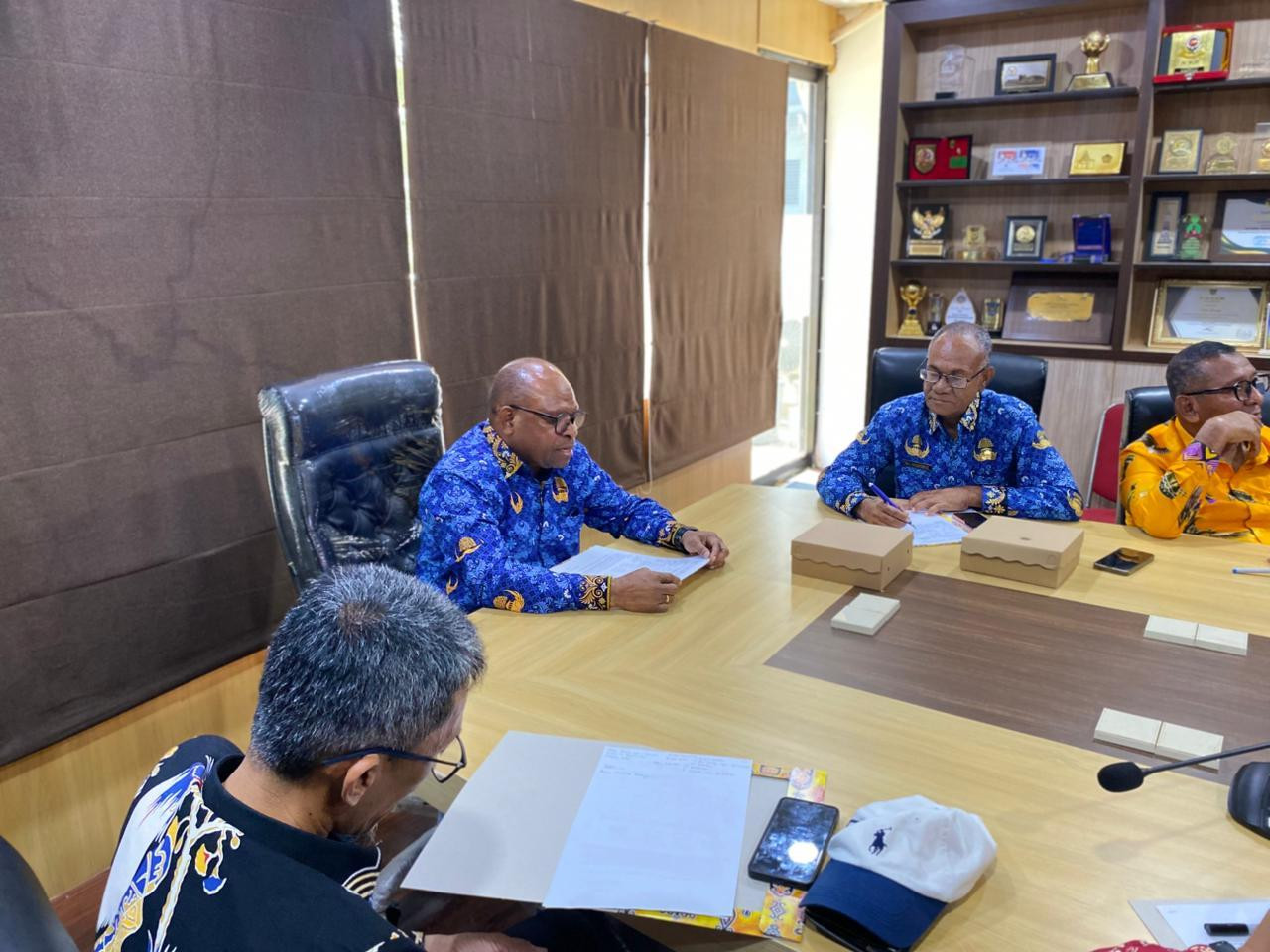 Kota Sorong - Wali Kota Sorong, Septinus Lobat, S.H., MPA., terima kunjungan dari Komisi II DPR Kota Sorong dibawah pimpinan Wakil Ketua I DPR Kota Sorong, Syahrir N., di ruang rapat Wali Kota Sorong. Kamis, (23/4/2026).