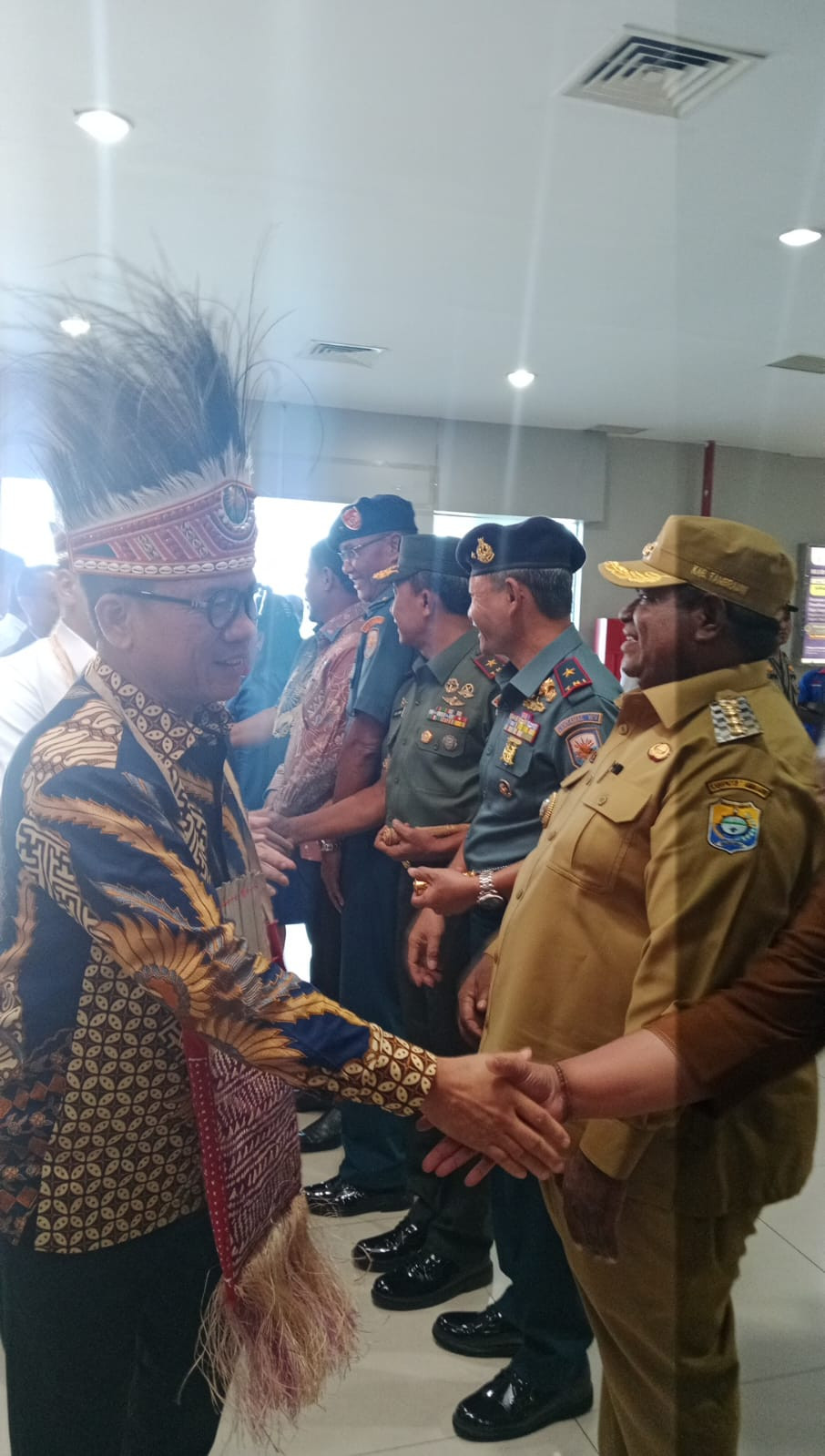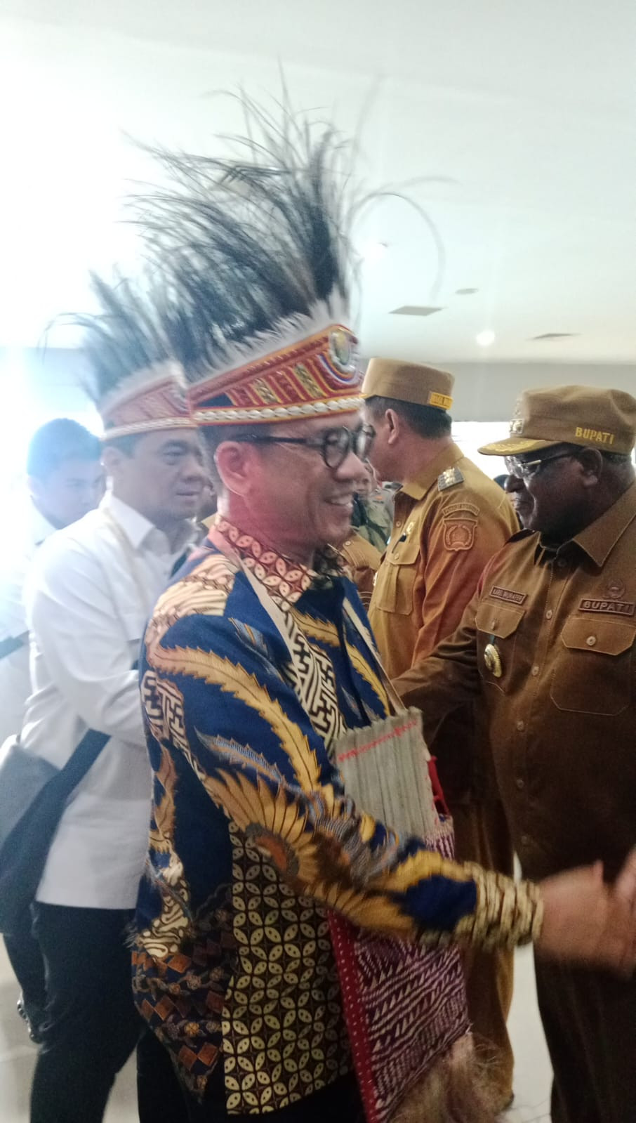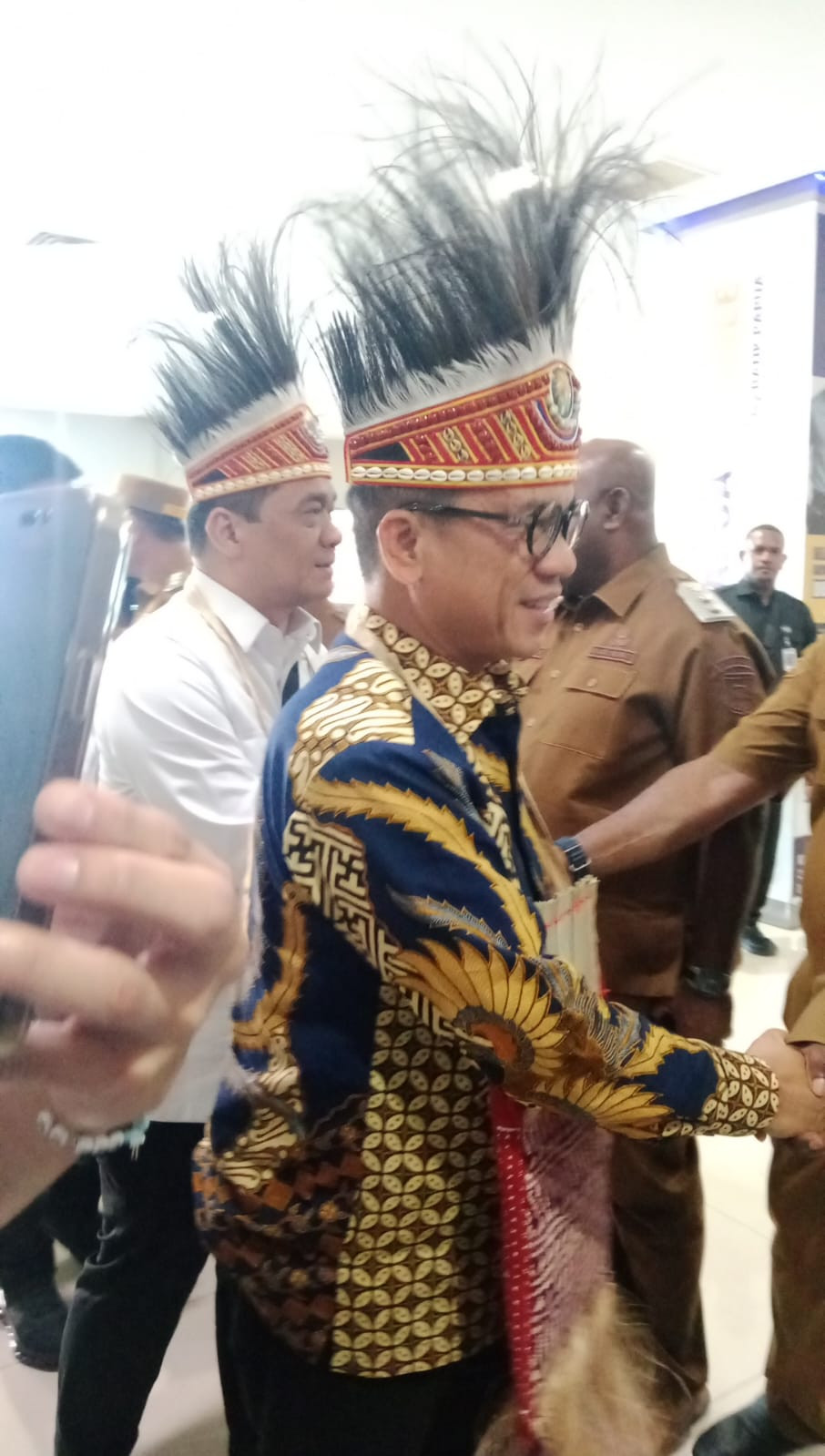 Penyambutan tersebut berlangsung meriah, diawali dengan prosesi adat khas Papua sebagai bentuk penghormatan terhadap tamu negara. Menteri dan Wakil Menteri disambut dengan pengalungan noken dan mahkota kasuari, serta pengawalan resmi menuju ruang VIP bandara.