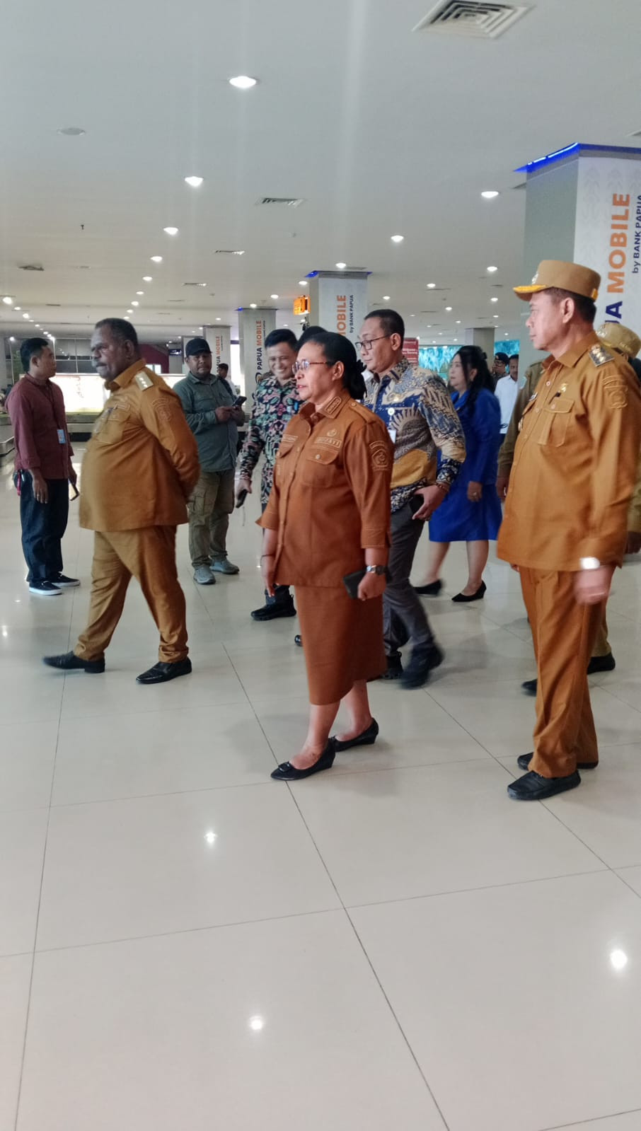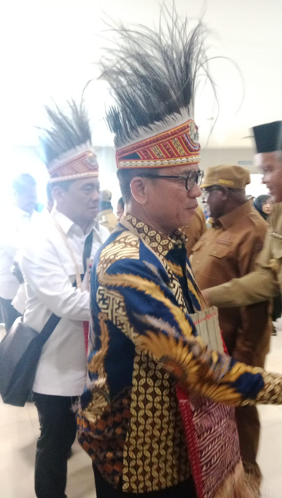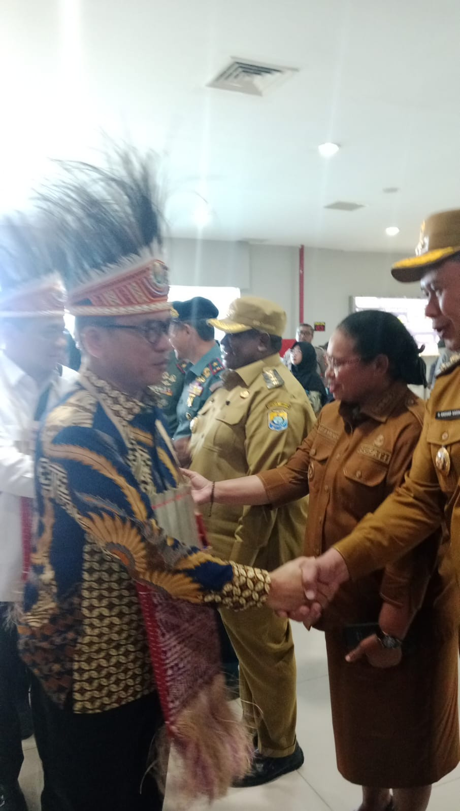 Penyambutan tersebut berlangsung meriah, diawali dengan prosesi adat khas Papua sebagai bentuk penghormatan terhadap tamu negara. Menteri dan Wakil Menteri disambut dengan pengalungan noken dan mahkota kasuari, serta pengawalan resmi menuju ruang VIP bandara.