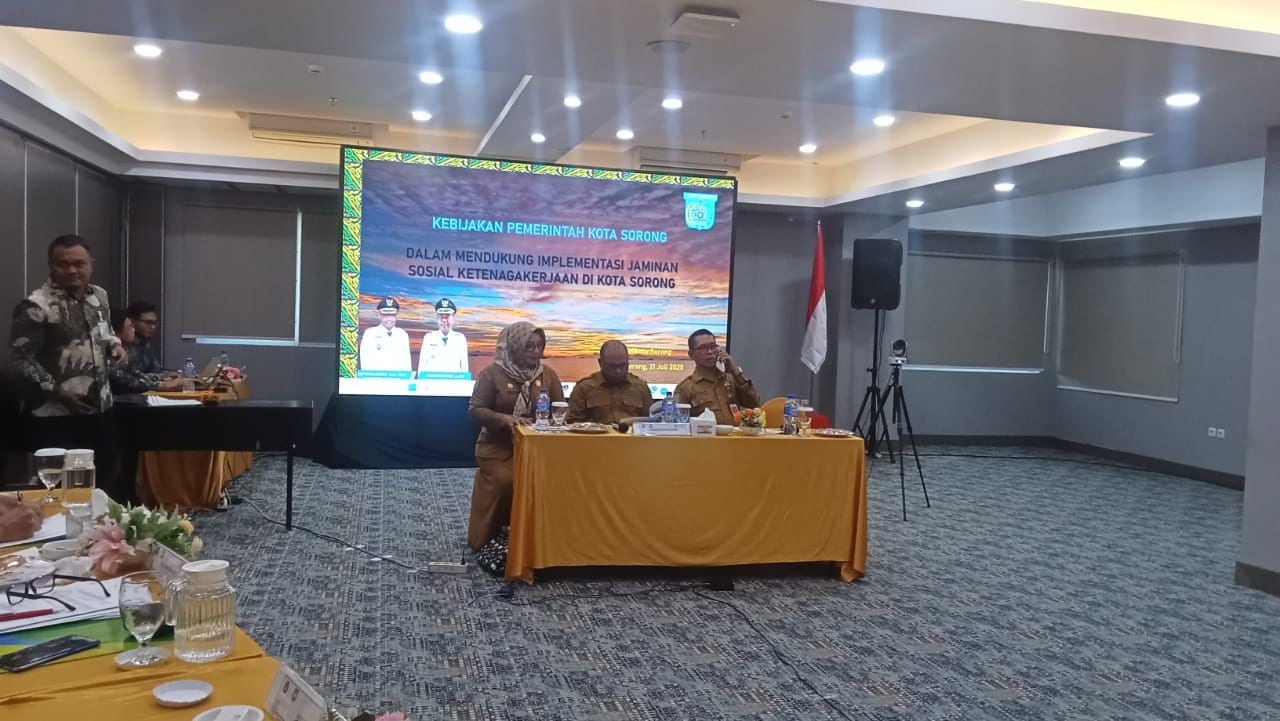 KOTA SORONG - Wali Kota Sorong, Septinus Lobat, S.H., MPA., didampingi Asisten II Setda Kota Sorong dan Kepala Dinas Ketenagakerjaan pemerintah Kota Sorong menghadiri kegiatan Wawancara Kandidat Penghargaan Paritrana Award Tingkat Provinsi Papua Barat Daya tahun 2025. Kegiatan ini diselenggarakan oleh BPJS Ketenagakerjaan yang dilaksanakan di Rylich Panorama Hotel Kota Sorong Provinsi Papua Barat Daya. Senin, (21/7/2025).