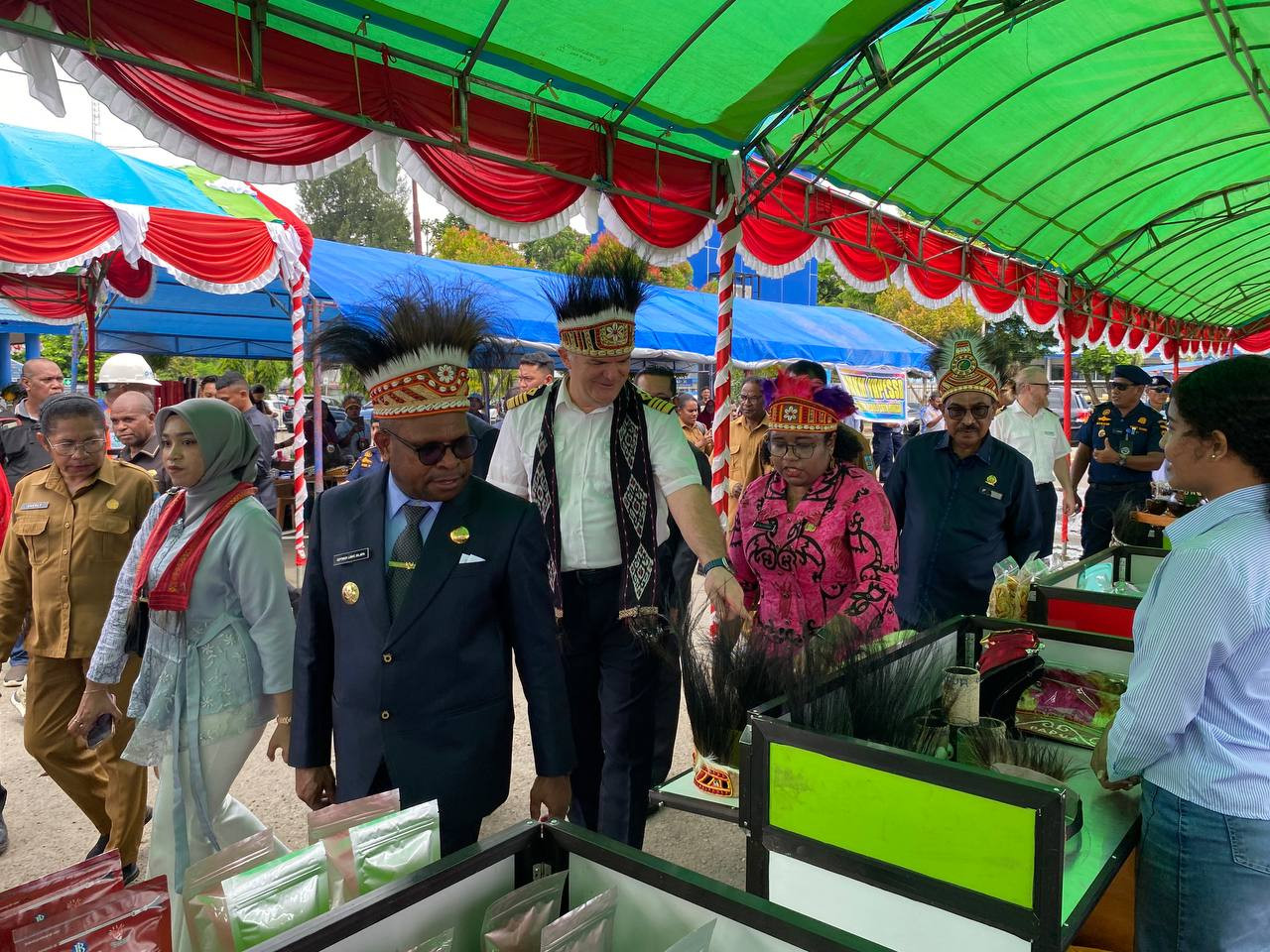 Kota Sorong - Wali Kota Sorong, Septinus Lobat, S.H., MPA., didampingi Ketua Dekranasda Kota Sorong, Jemima Elisabeth Lobat, S.K.M., MAP,...