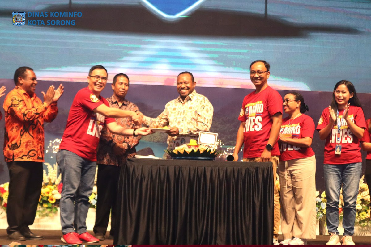 Mewakili Wali Kota Sorong, Plt. Kepala Dinas Komunikasi dan Informatika (Kominfo) Kota Sorong, James Burung, S.Sos., M.M., menghadiri acara...
