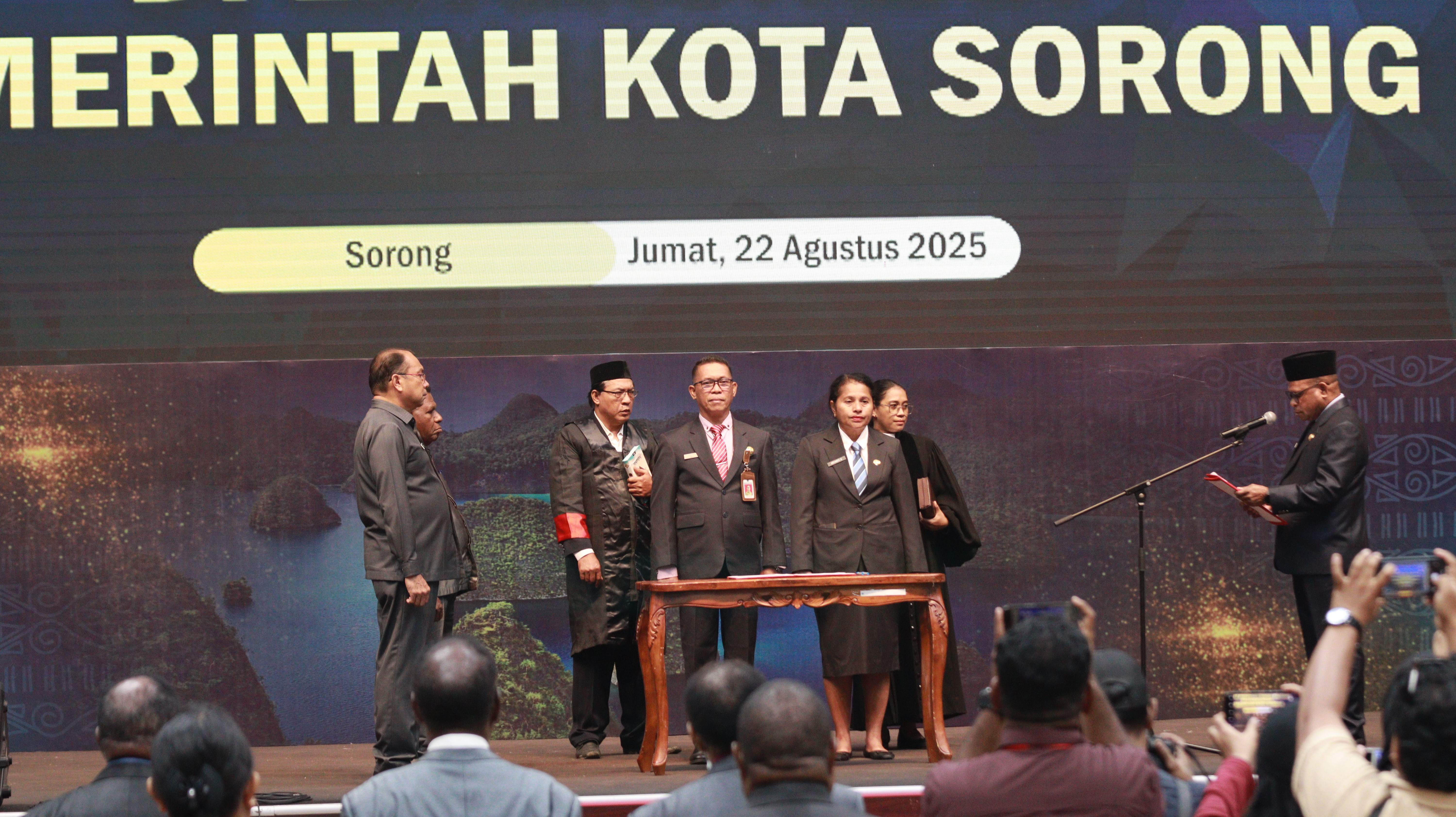 BERITA FOTO :Mewakili Wali Kota Sorong, Asisten Bidang Pemerintahan dan Kesejahteraan Rakyat, Jeremias Gembenop, S.Sos., M.H., menghadiri Pelantikan dan Pengukuhan...