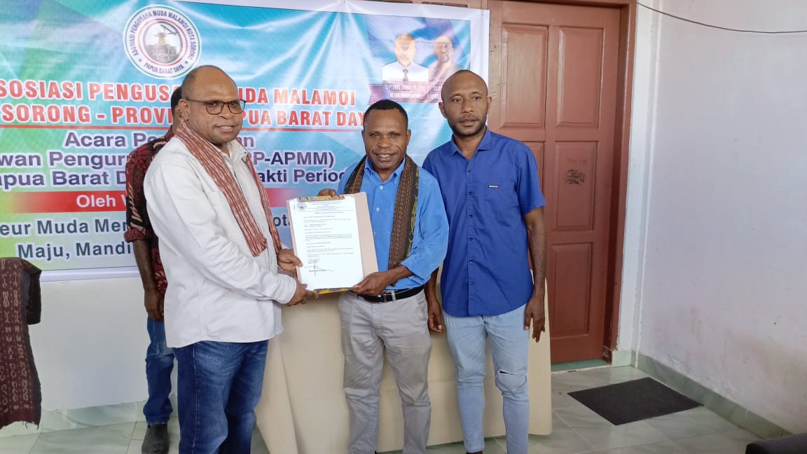 Wali Kota Sorong, Septinus Lobat, S.H., M.P.A., menghadiri sekaligus mengukuhkan Dewan Pengurus Pusat (DPP) Asosiasi Pengusaha Muda Malamoi (APMM) Kota...