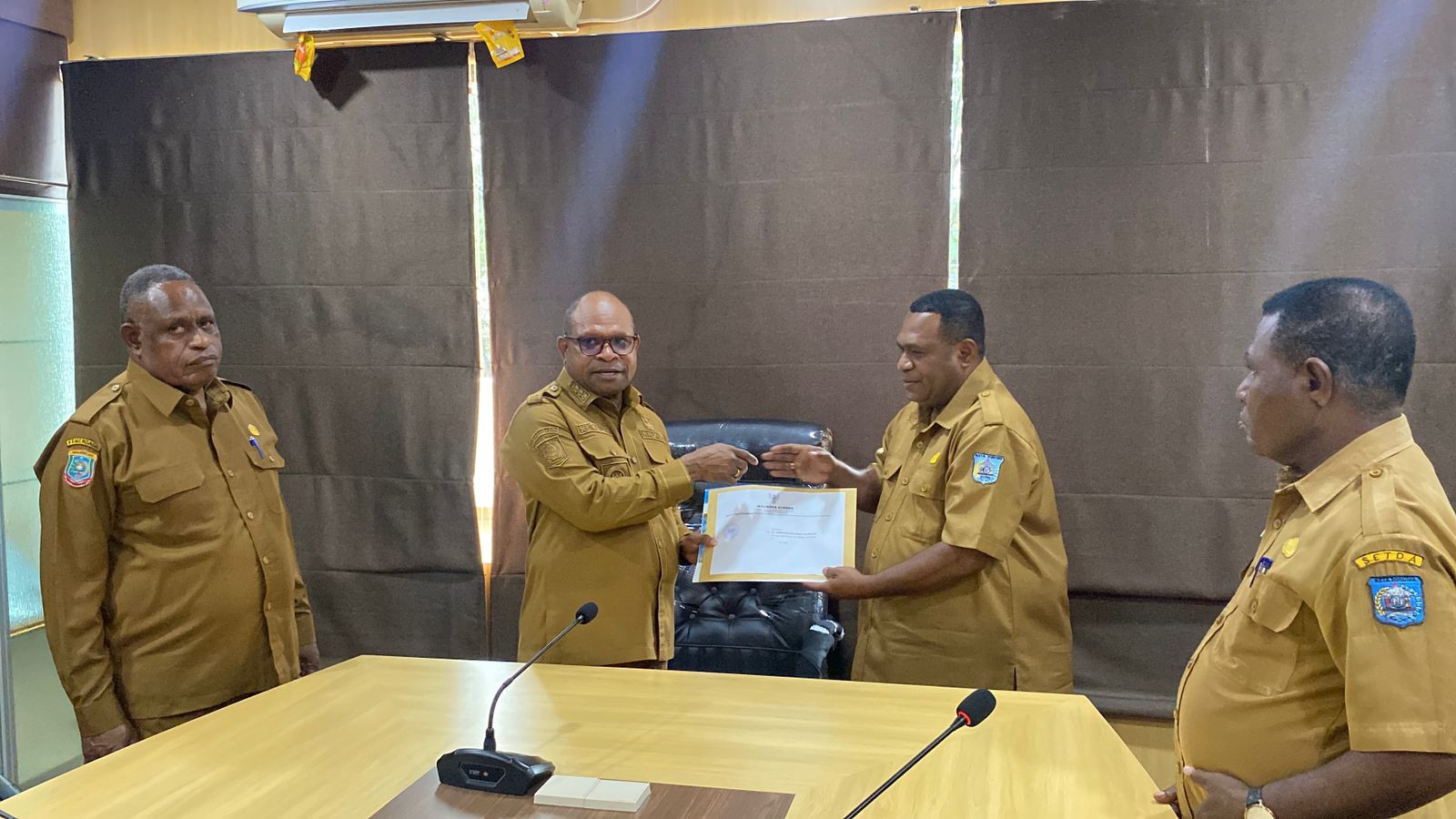 KOTA SORONG - Wali Kota Sorong, Septinus Lobat, S.H., MPA., serahkan SK Pelaksana Tugas (Plt) Kepala Dinas Pemuda dan Olahraga...