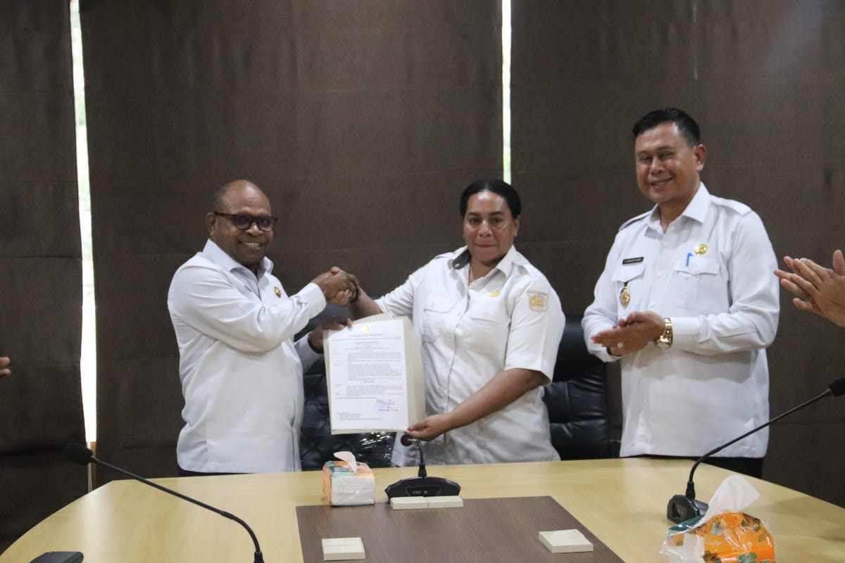 KOTA SORONG - Wali Kota Sorong, Septinus Lobat, S.H., MPA, Bersama Sahli Ekubang dan Kabag Kesra Setda Kota Sorong, terima...